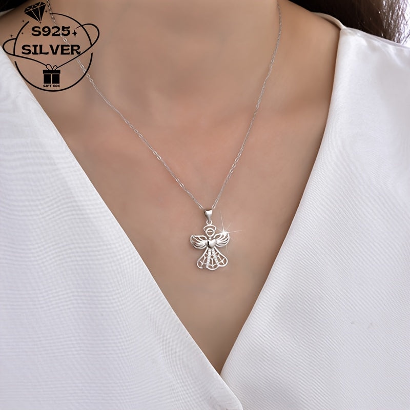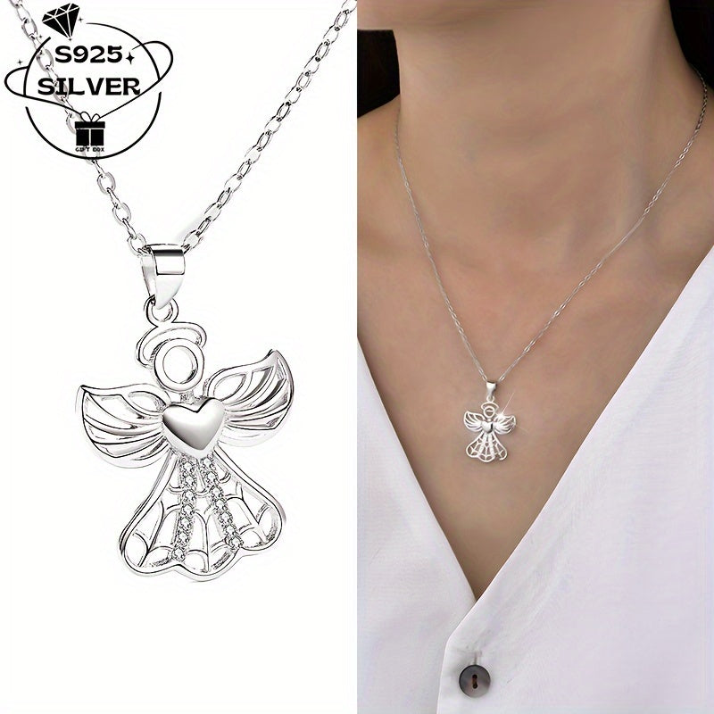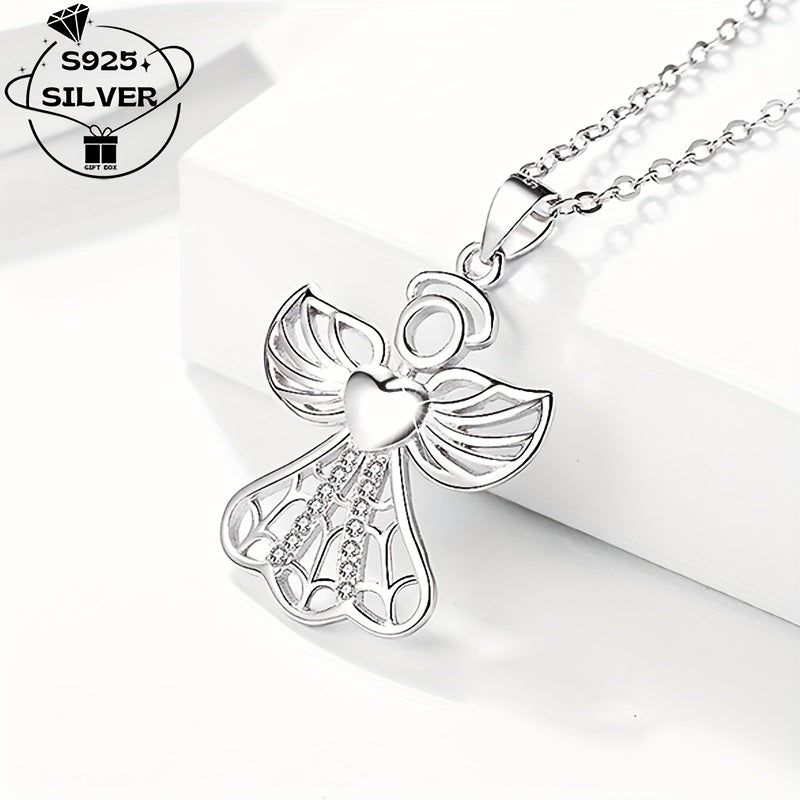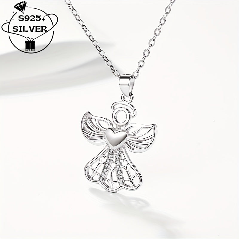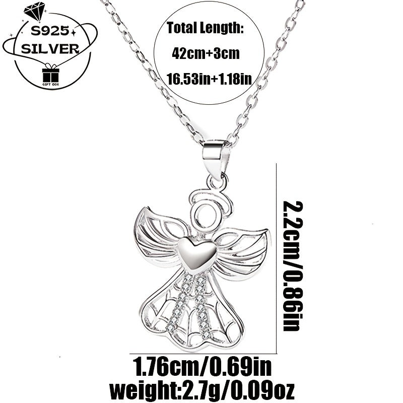 This 925 sterling silver necklace features a heart angel pendant with cubic zirconia, making it perfect for daily wear or special occasions. Hypoallergenic and lightweight at 2.7g.