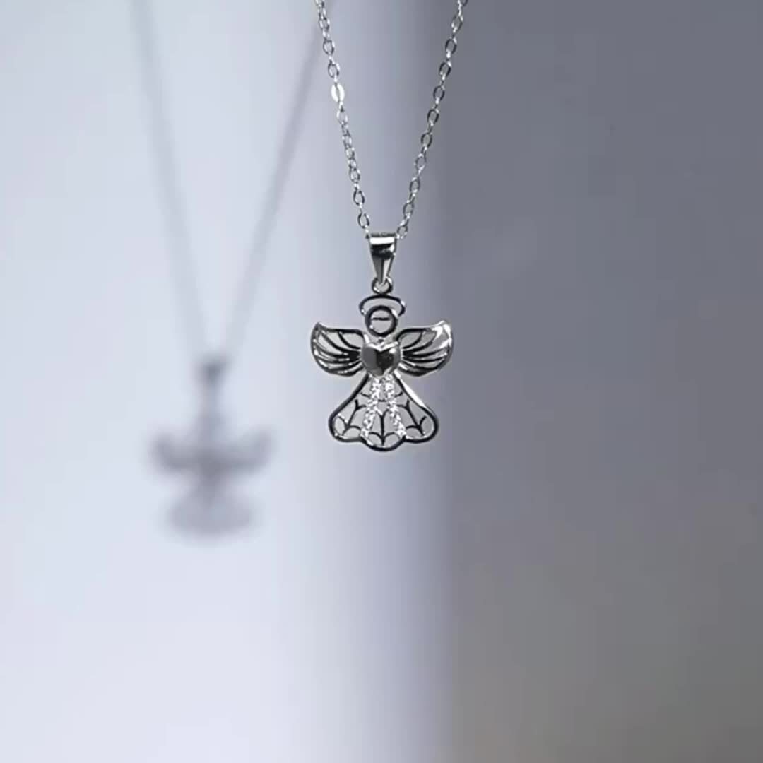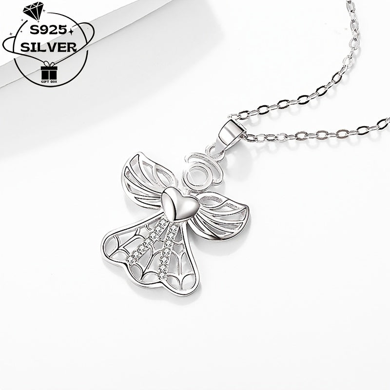 925 Silver Heart Angel Necklace with CZ Hypoallergenic