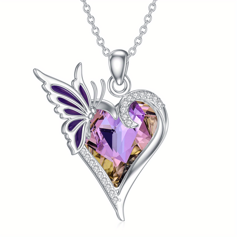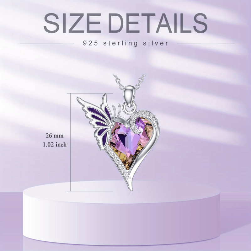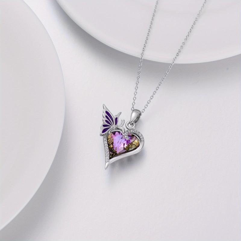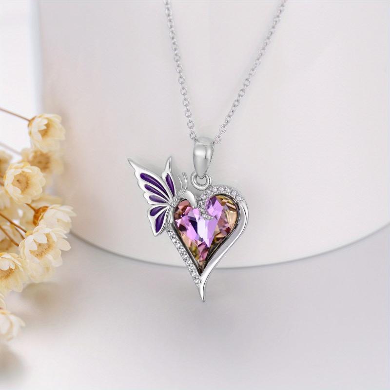 This stunning necklace features a synthetic crystal heart butterfly pendant crafted in 925 sterling silver. A perfect accessory for women.