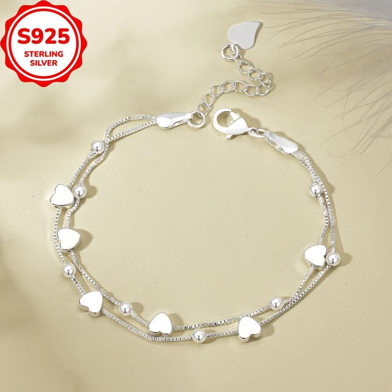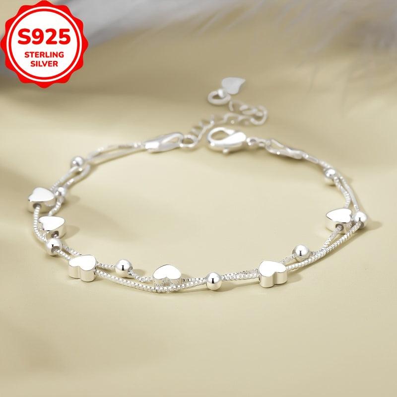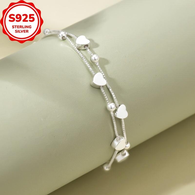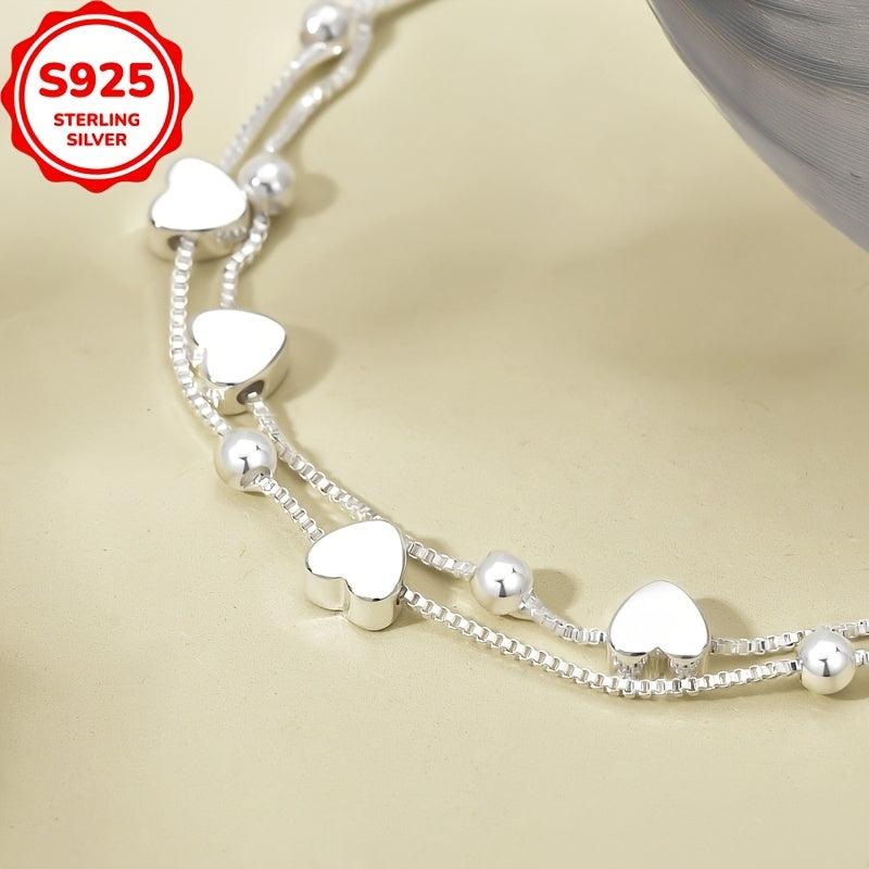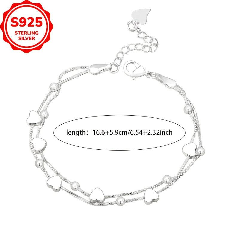 This 925 sterling silver bracelet features heart and round beads, suitable for all seasons and occasions. Perfect gift option!