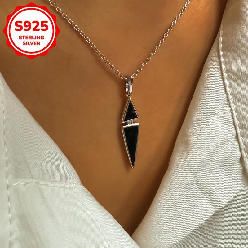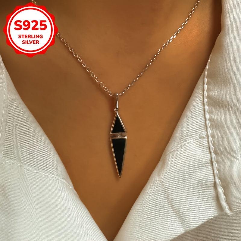 Elegant and stylish, this 925 sterling silver pendant necklace features a geometric diamond shape with resin detailing. Lightweight at 3.5g, perfect for daily wear, parties, and gift-giving.