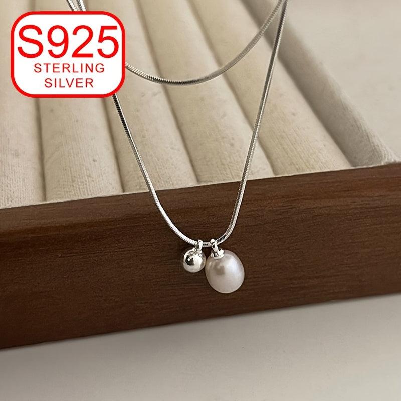 925 Silver Hypoallergenic Snake Bone Pearl Necklace