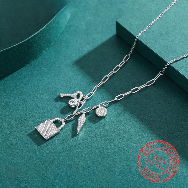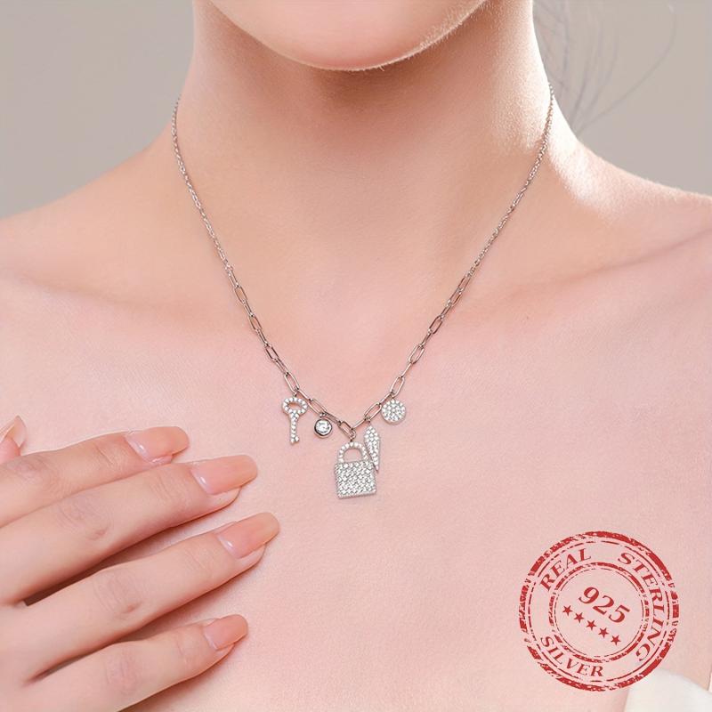 925 Silver Key Lock Pendant Necklace Wedding Jewelry