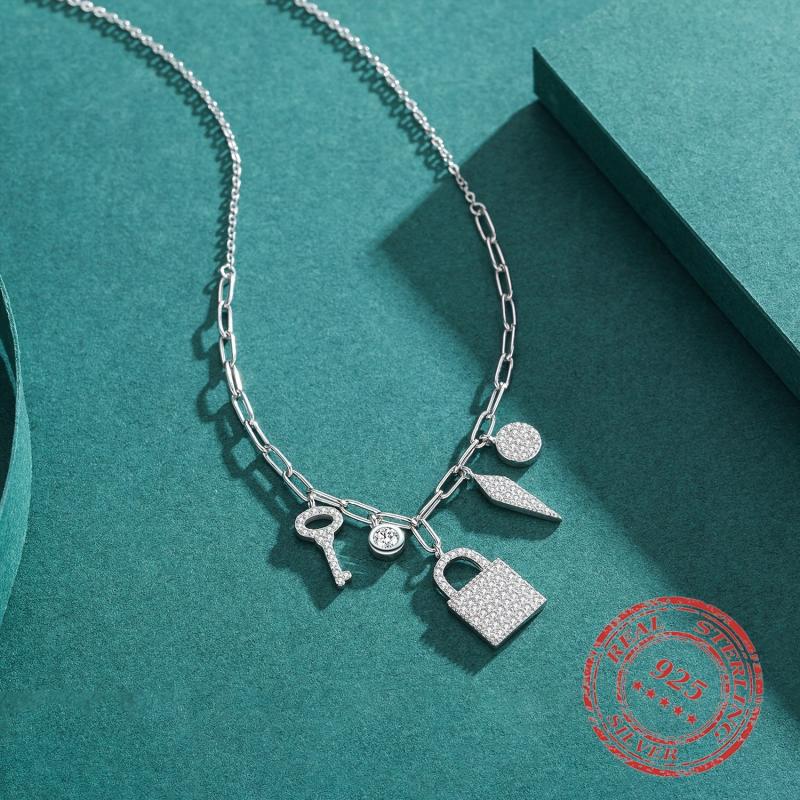 This charming necklace features a key lock geometric pendant, making it perfect for weddings and engagements. Crafted from pure 925 sterling silver.