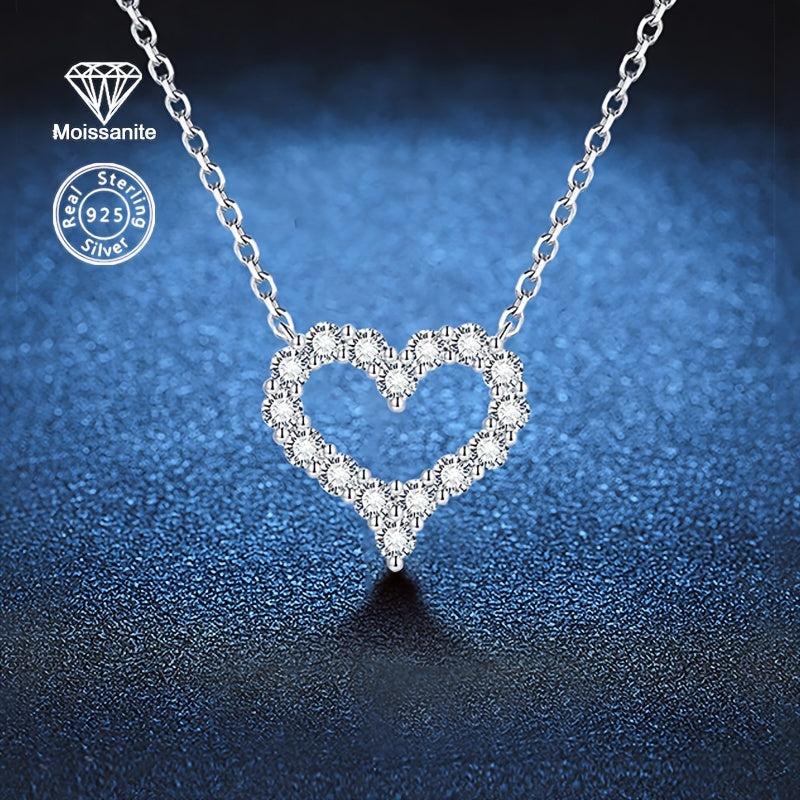 925 Silver Moissanite Heart Shaped Pendant Necklace Jewelry Gift