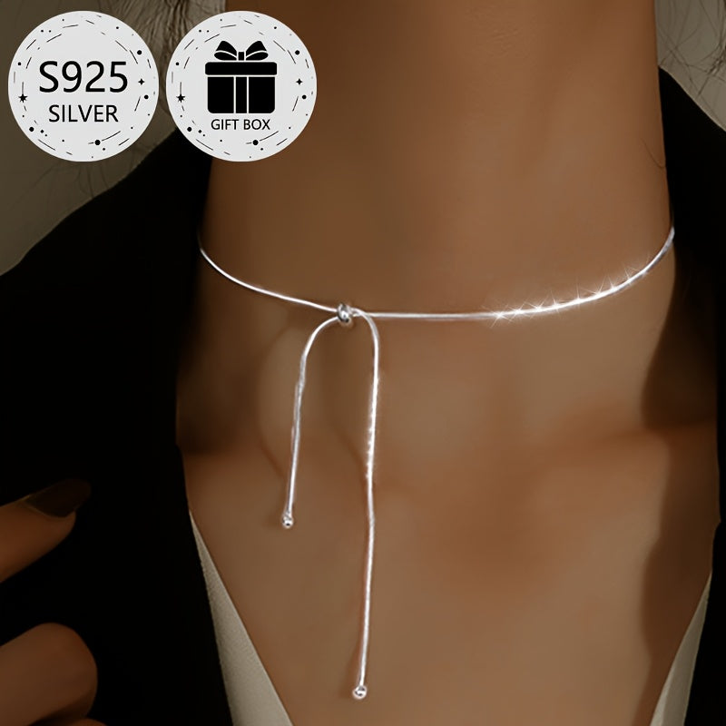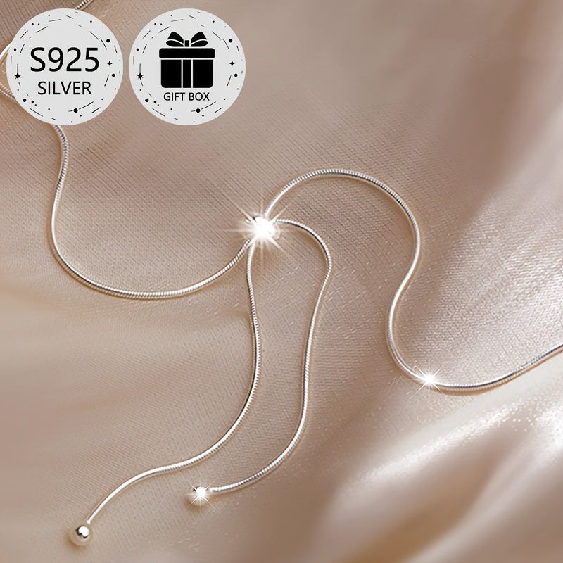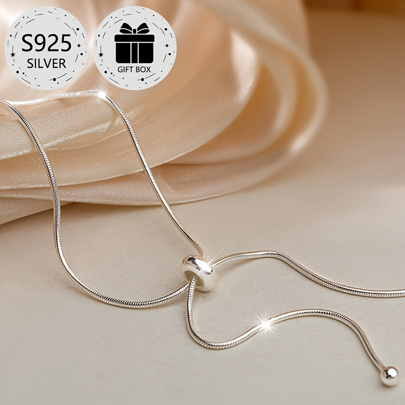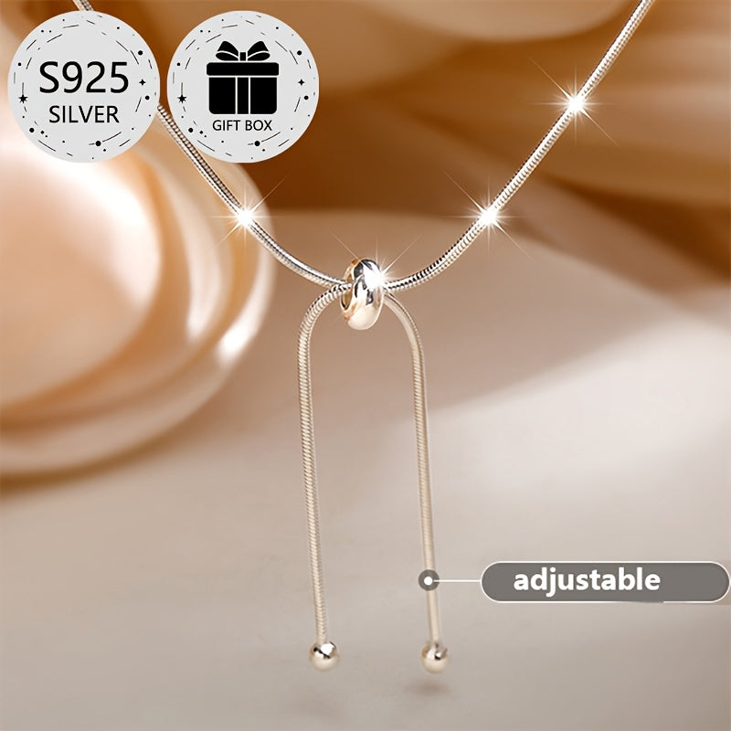This adjustable 925 sterling silver necklace is a perfect minimalist accessory for daily wear. The snake bone chain design adds a touch of elegance to your outfit.