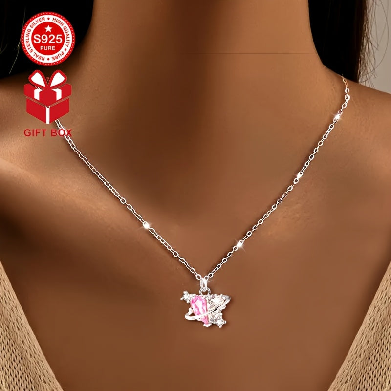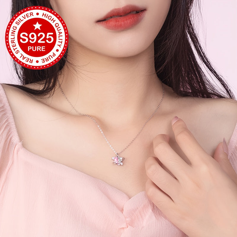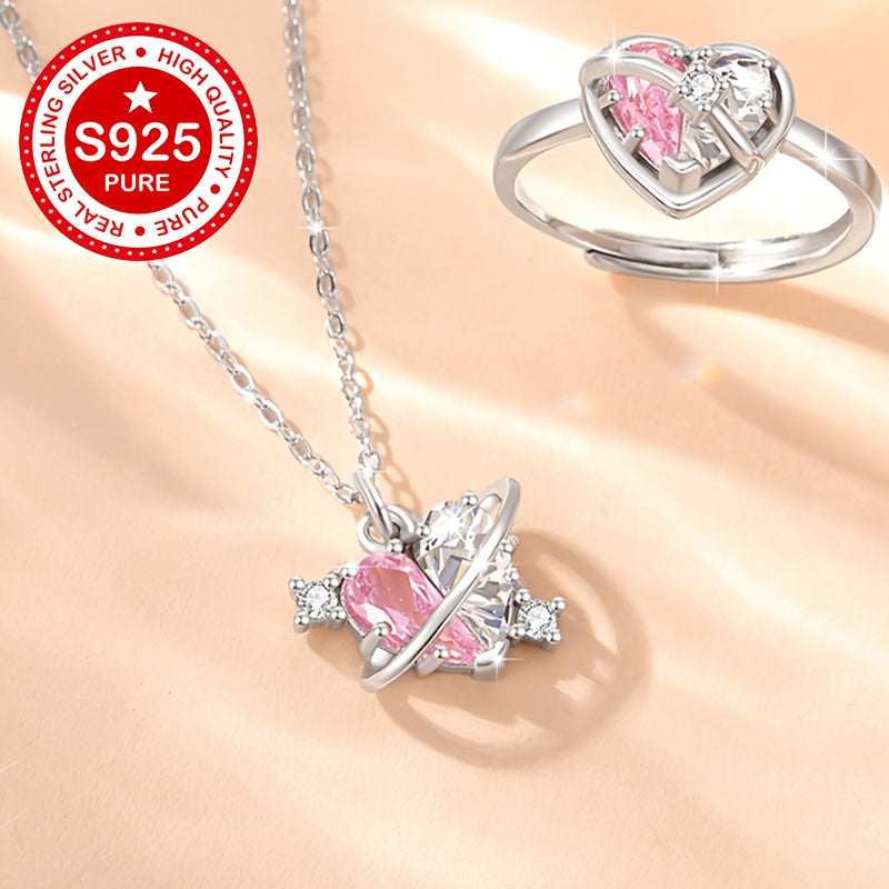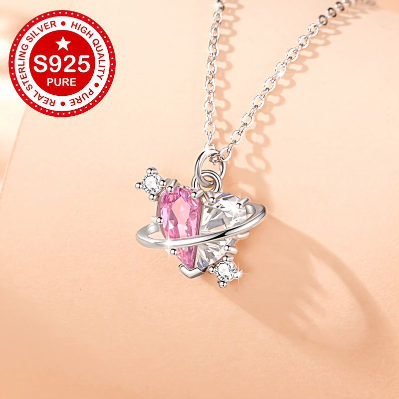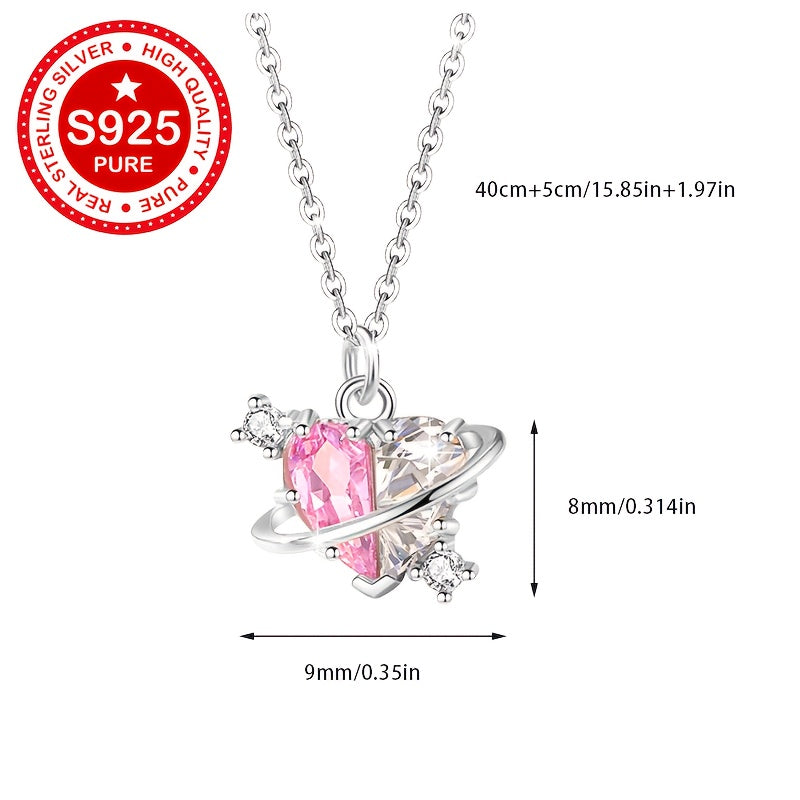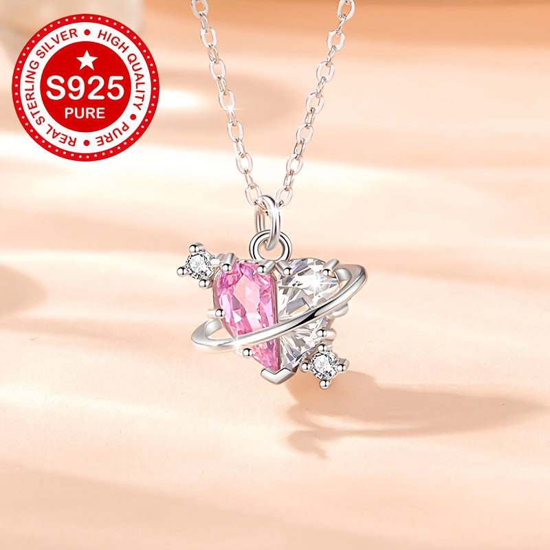 Add a touch of elegance to your outfit with this stunning 925 silver pendant necklace featuring a pink zirconia heart and 18K golden plating.