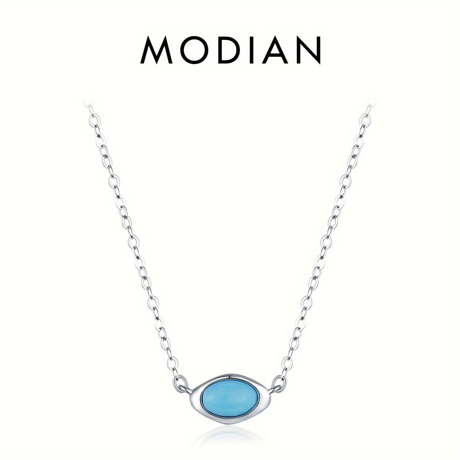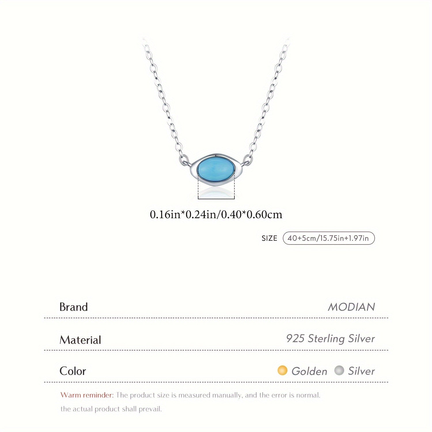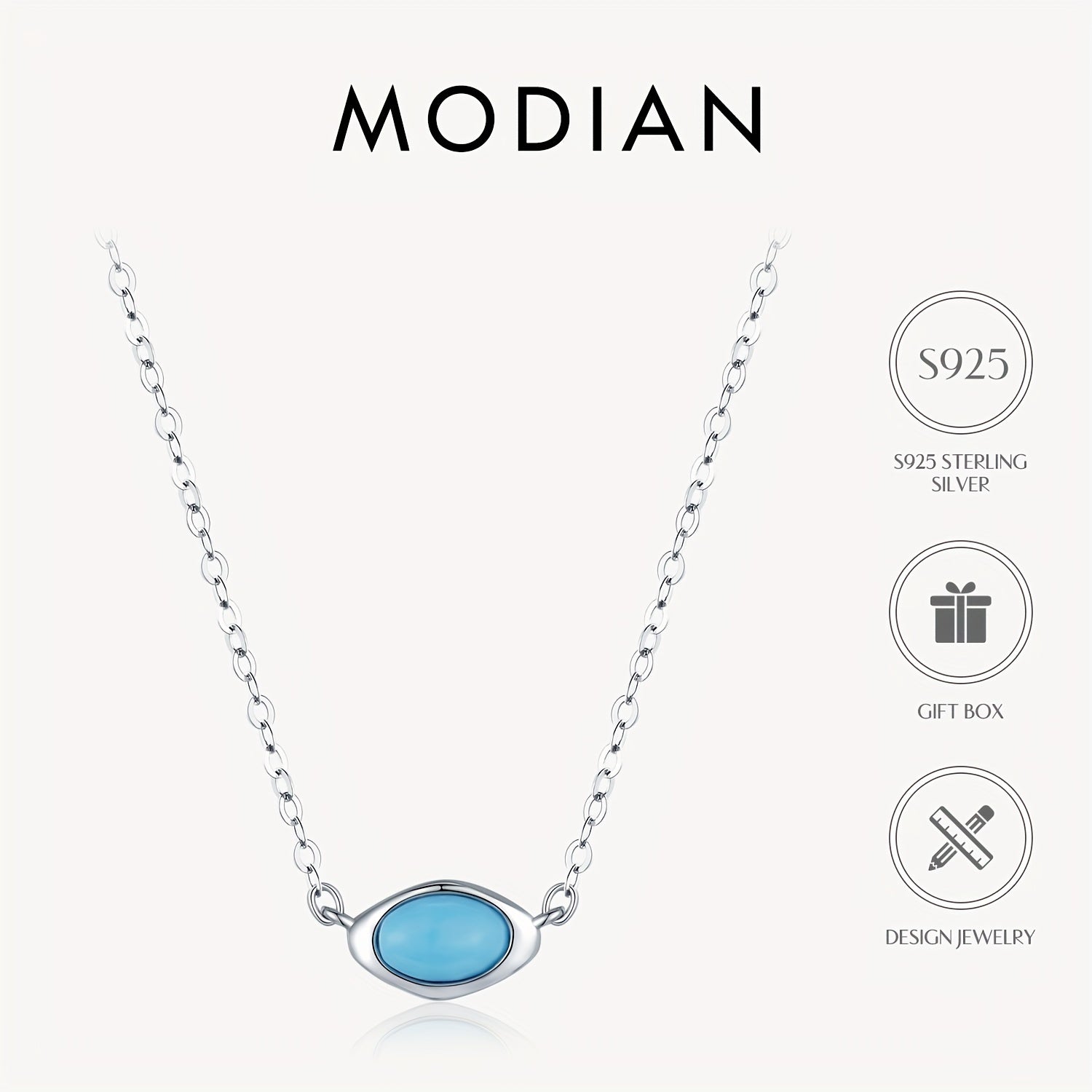 This MODIAN necklace features a vintage design with a synthetic turquoise oval pendant. Crafted from 925 sterling silver, this fine jewelry piece is a perfect gift for women that can be worn in all seasons.