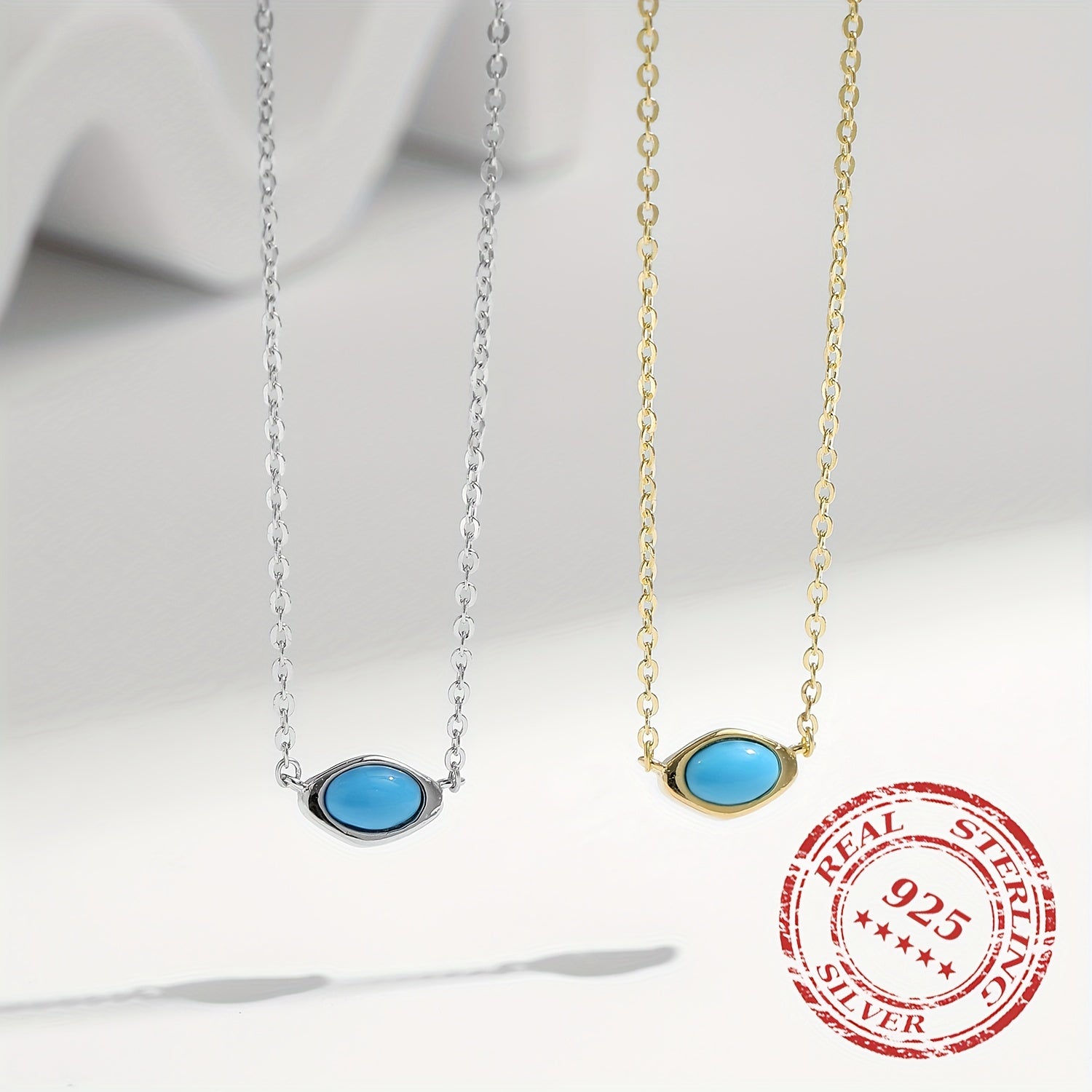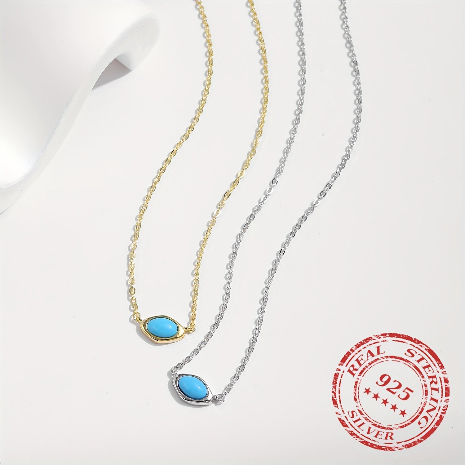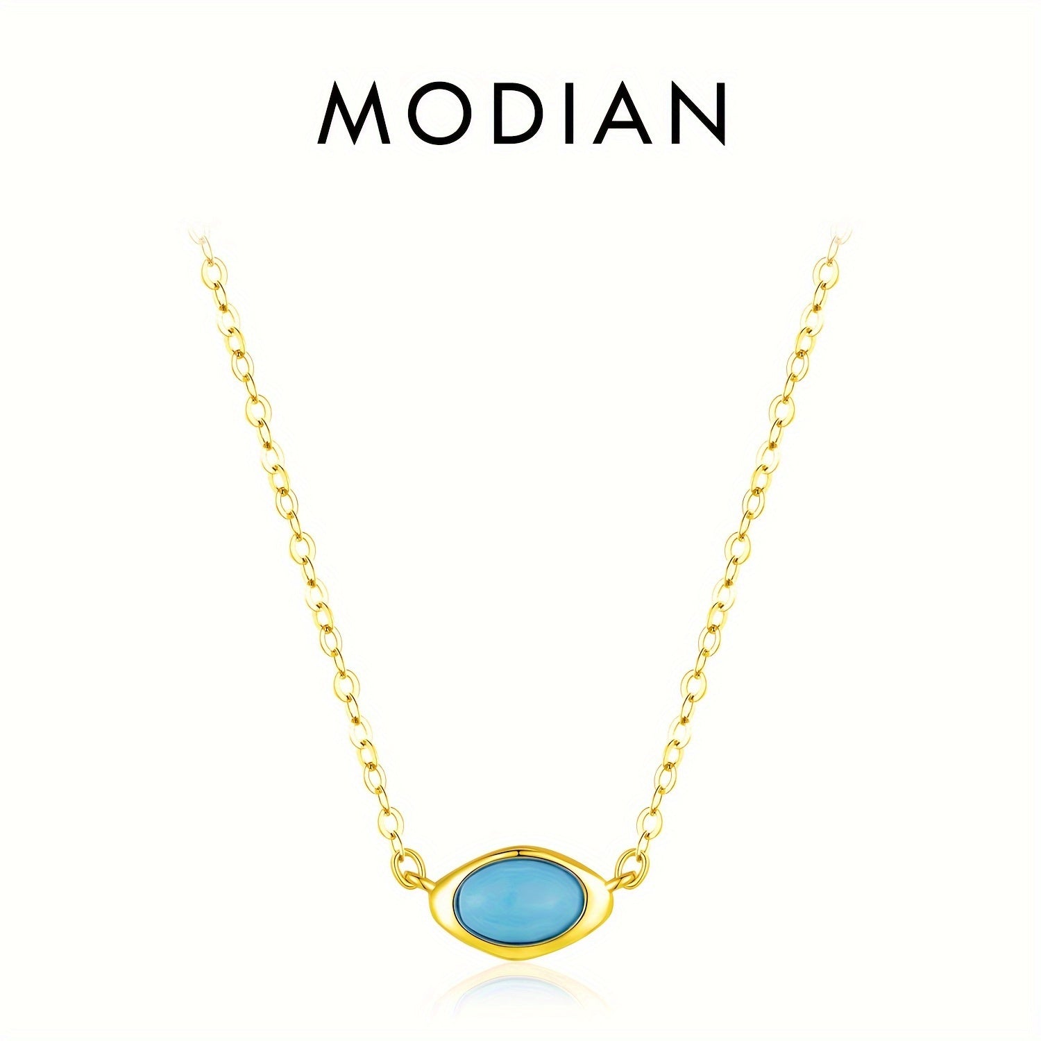 This MODIAN necklace features a vintage design with a synthetic turquoise oval pendant. Crafted from 925 sterling silver, this fine jewelry piece is a perfect gift for women that can be worn in all seasons.