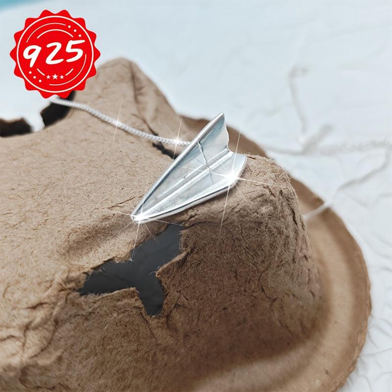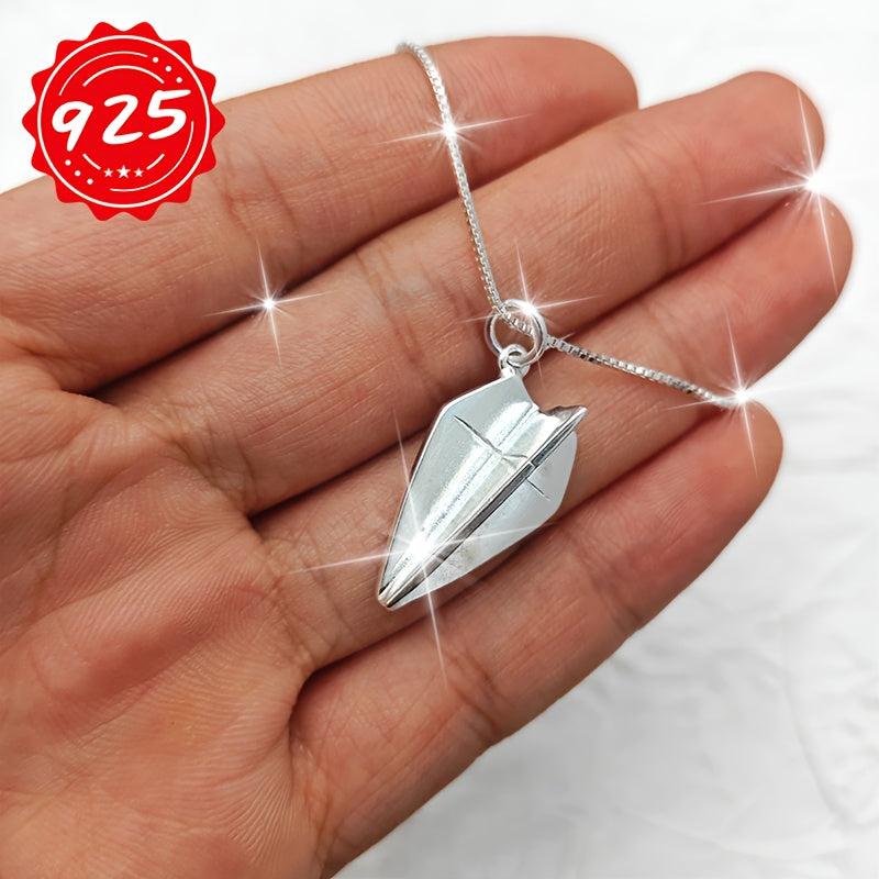 This paper airplane pendant necklace is made of 925 silver, perfect for women, couples, and friends. Ideal for daily wear, weddings, beach vacations.