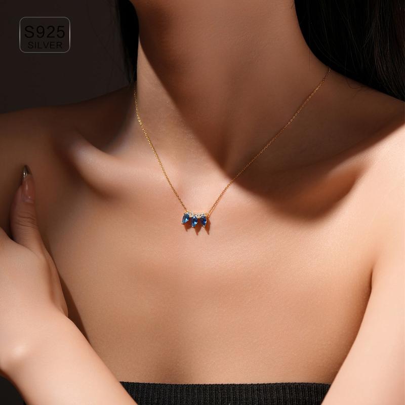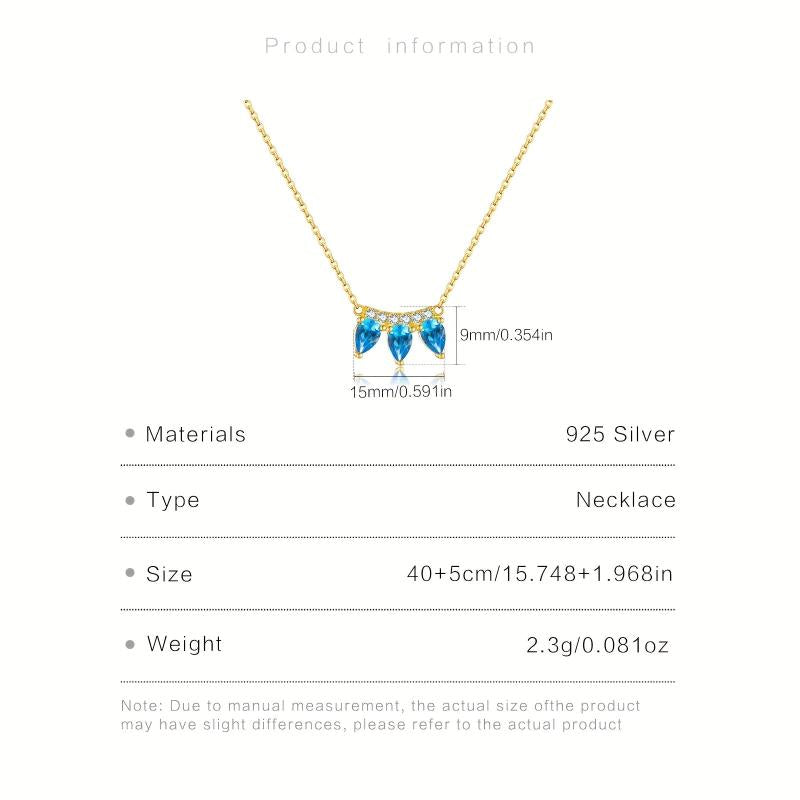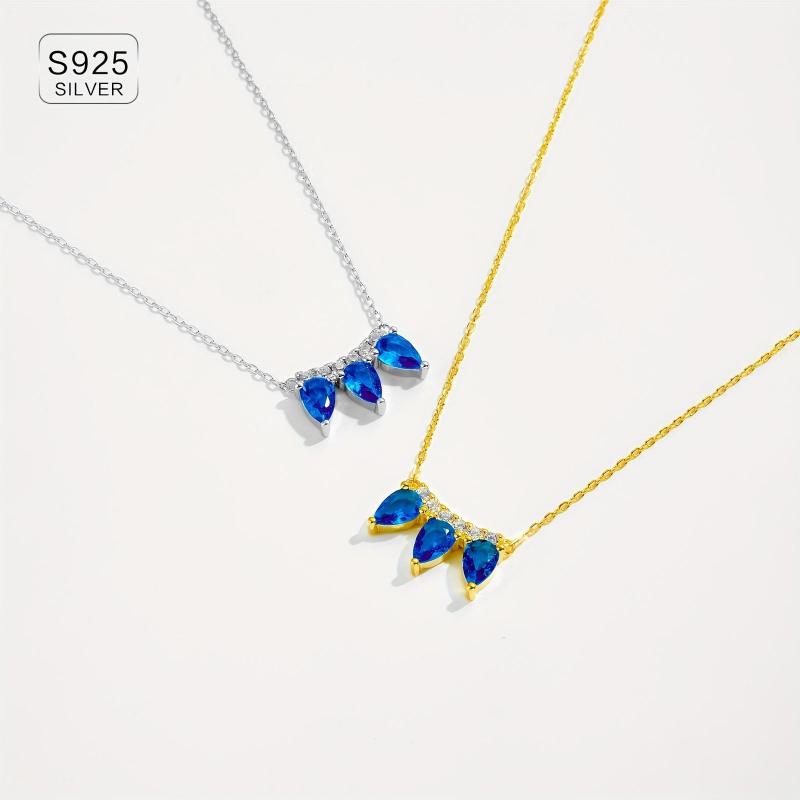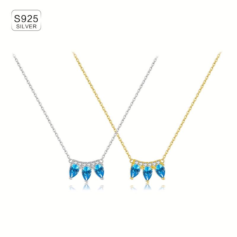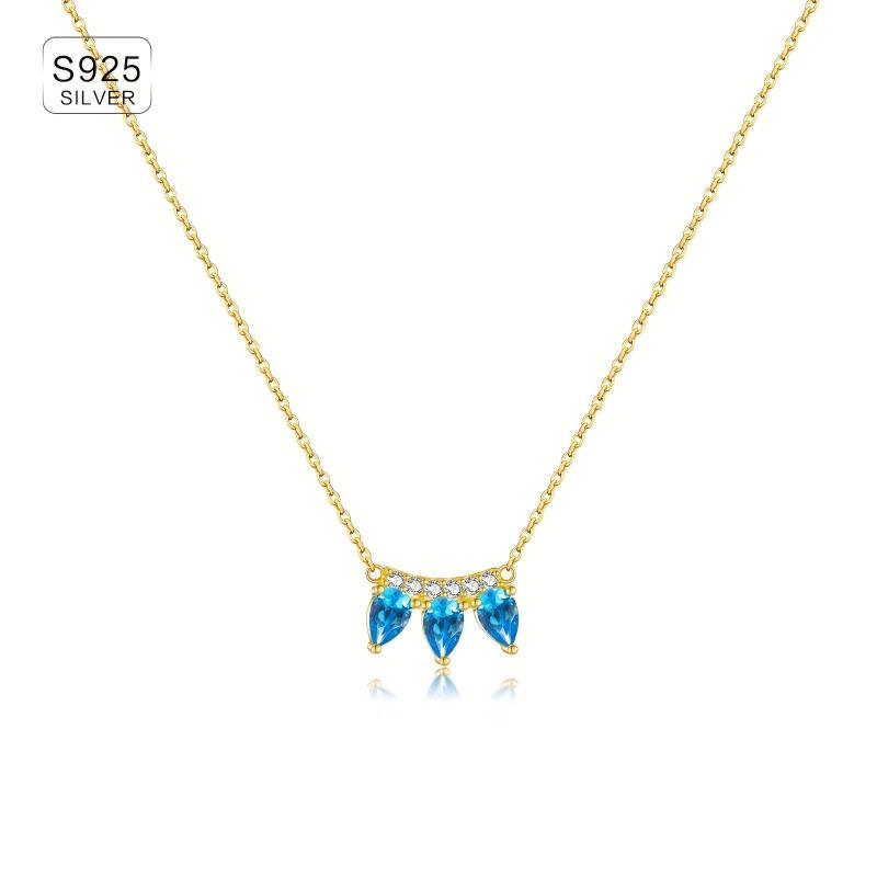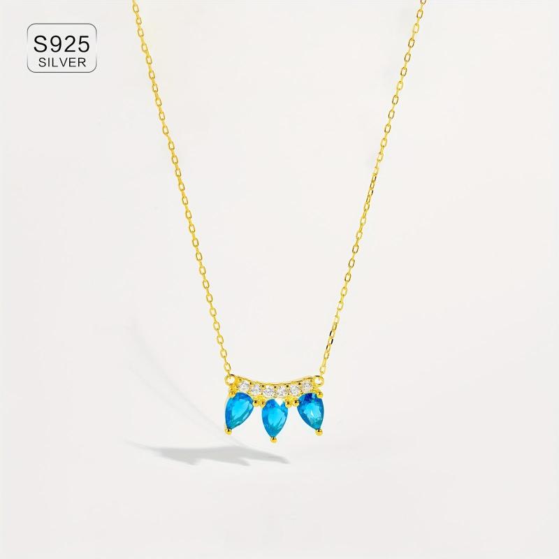925 Silver Pendant Necklace 18k Golden Plated with Zirconia Decoration