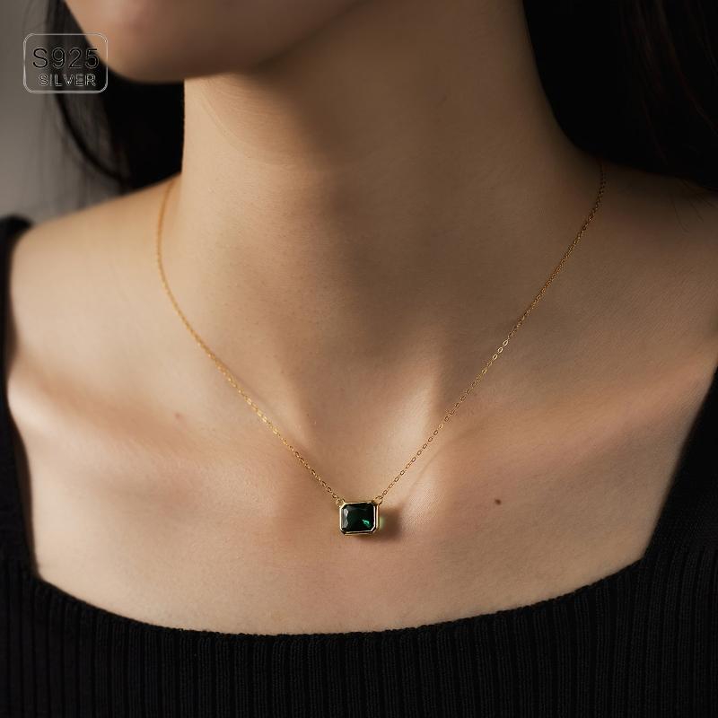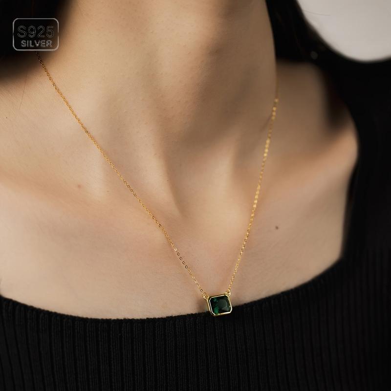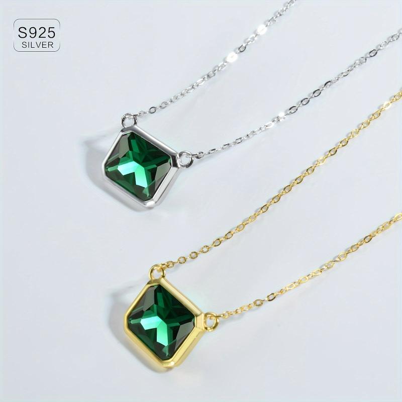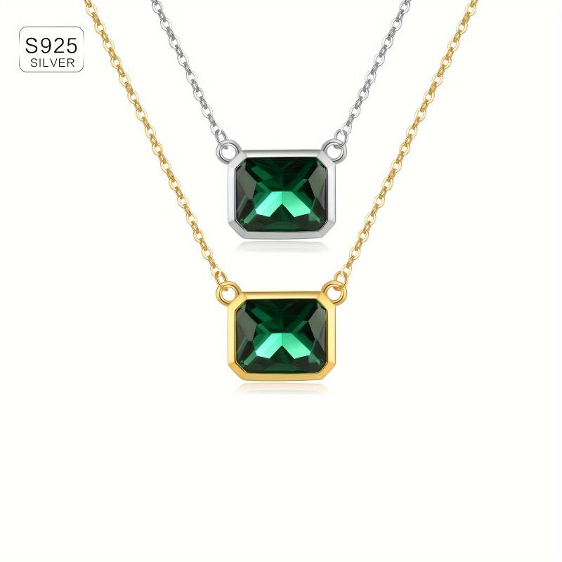 925 Silver Pendant Necklace Green Zirconia 1 97g Anniversary Gift Women