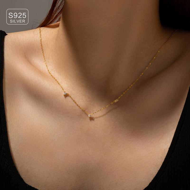 Elevate your style with this fashionable 925 silver pendant featuring 3 sparkling synthetic zirconia stones. Perfect for daily wear and vacation outfits.
