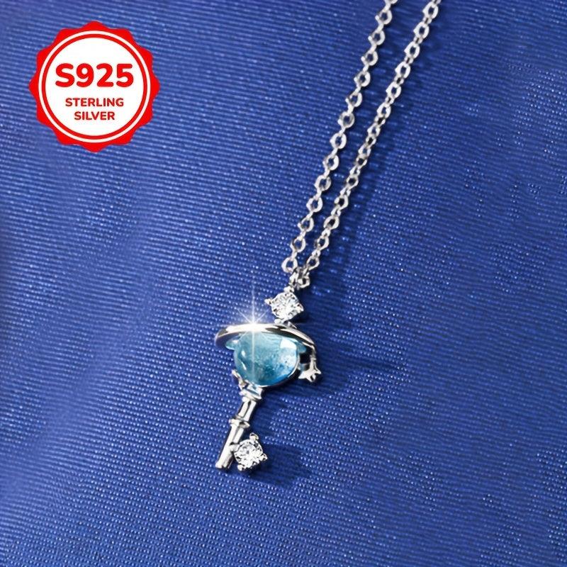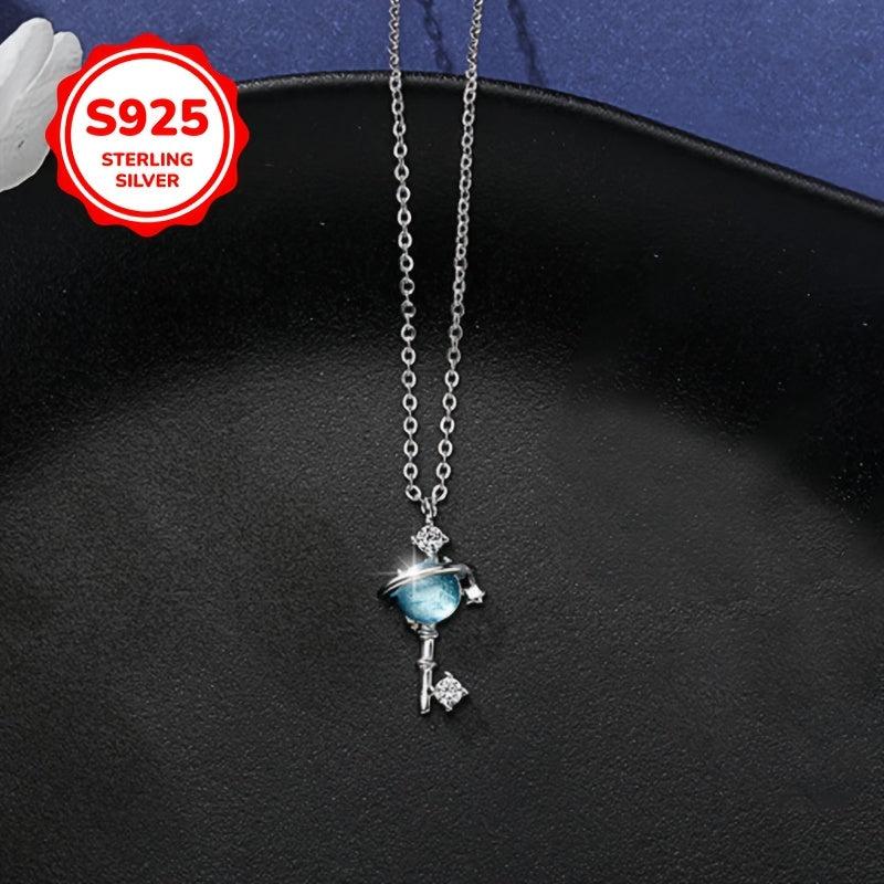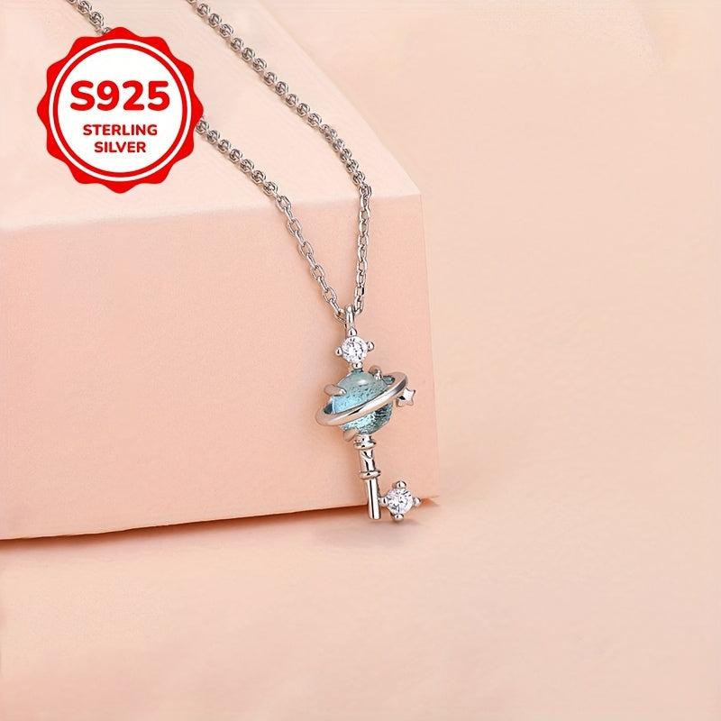 Hypoallergenic, minimalist and stylish planet key necklace with a versatile collarbone chain. Ideal for gifting to couples or friends for daily wear.