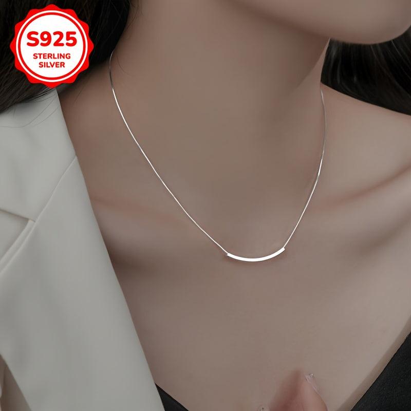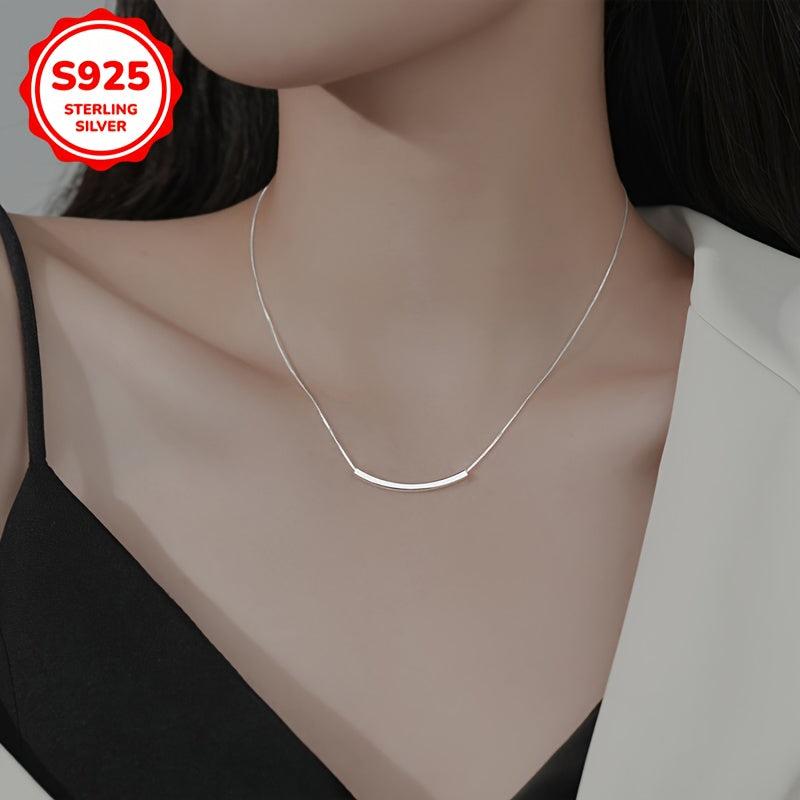 This stylish necklace features a horizontal bar pendant made of 925 silver. Perfect for both men and women with a punk aesthetic.
