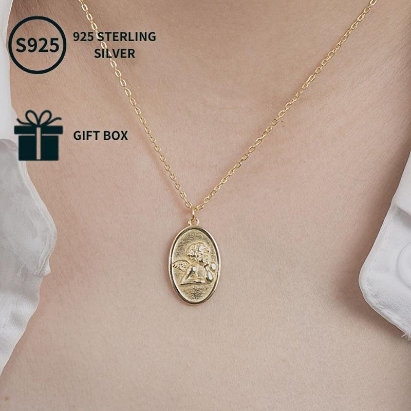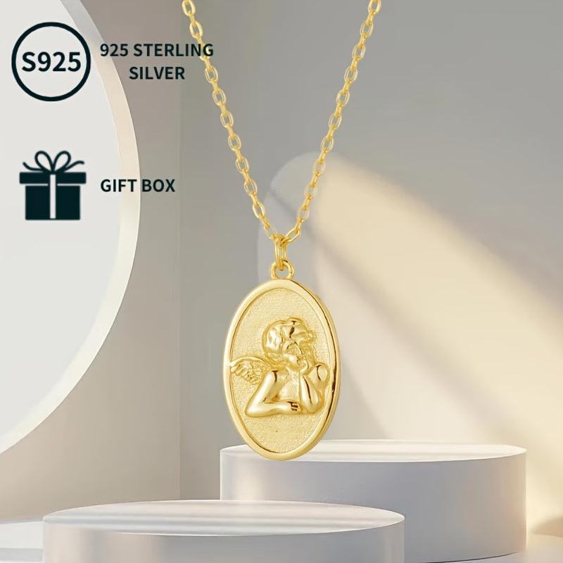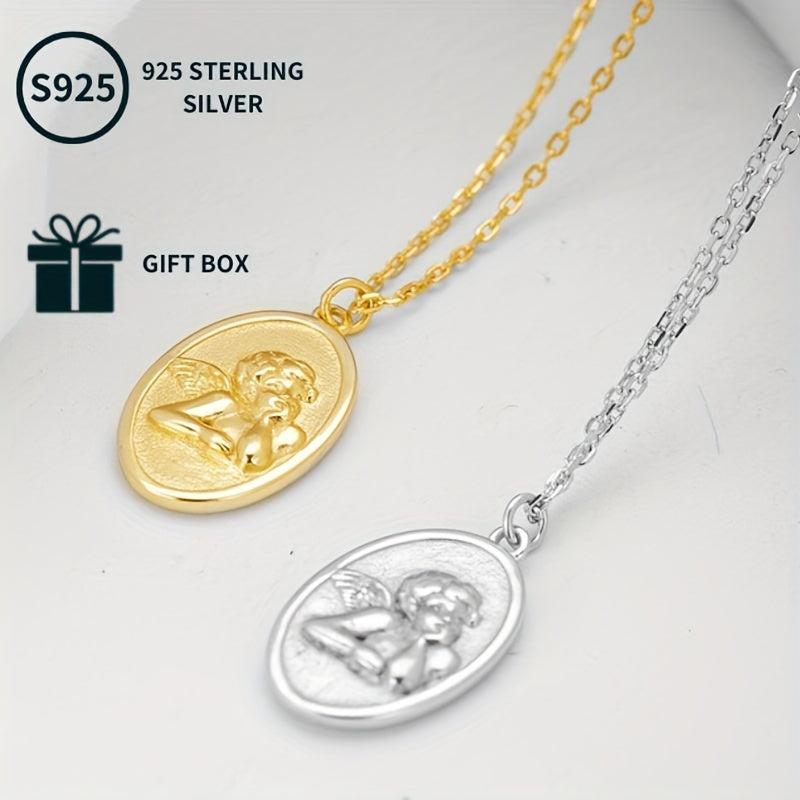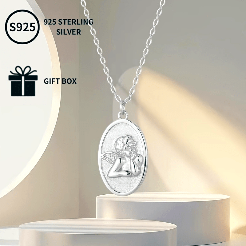 This stunning necklace features a round angel pendant. Perfect gift for any occasion like Mother's Day, wedding anniversary, or special moment with your loved one.