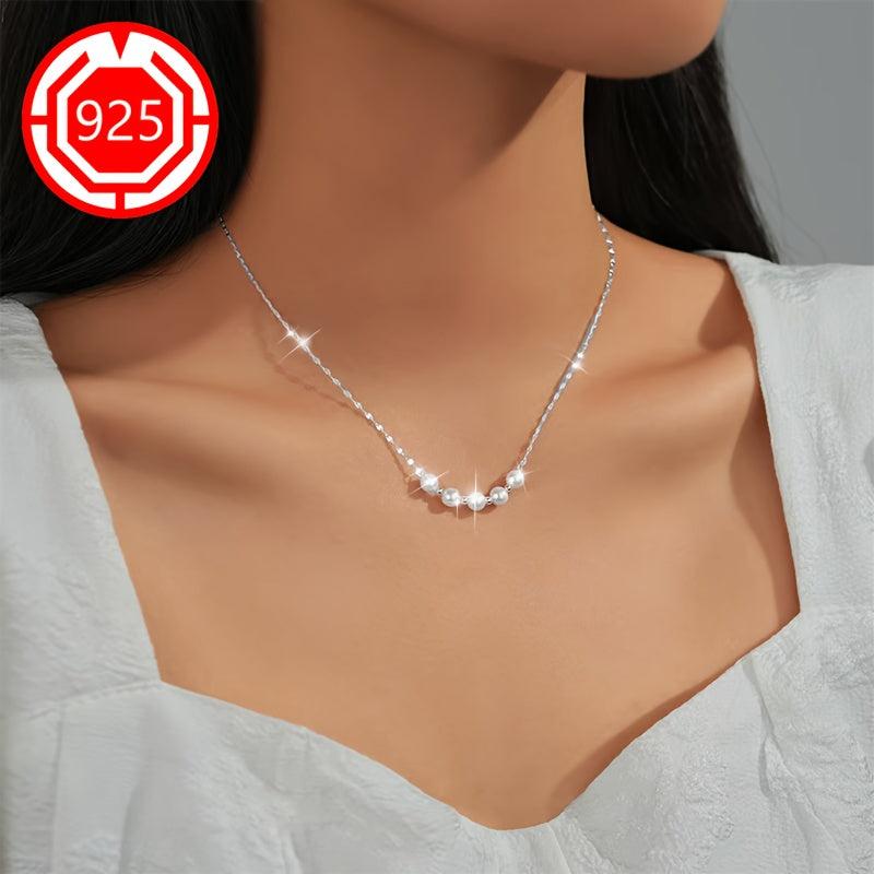925 Silver Shell Bead Necklace Low Allergy for Women