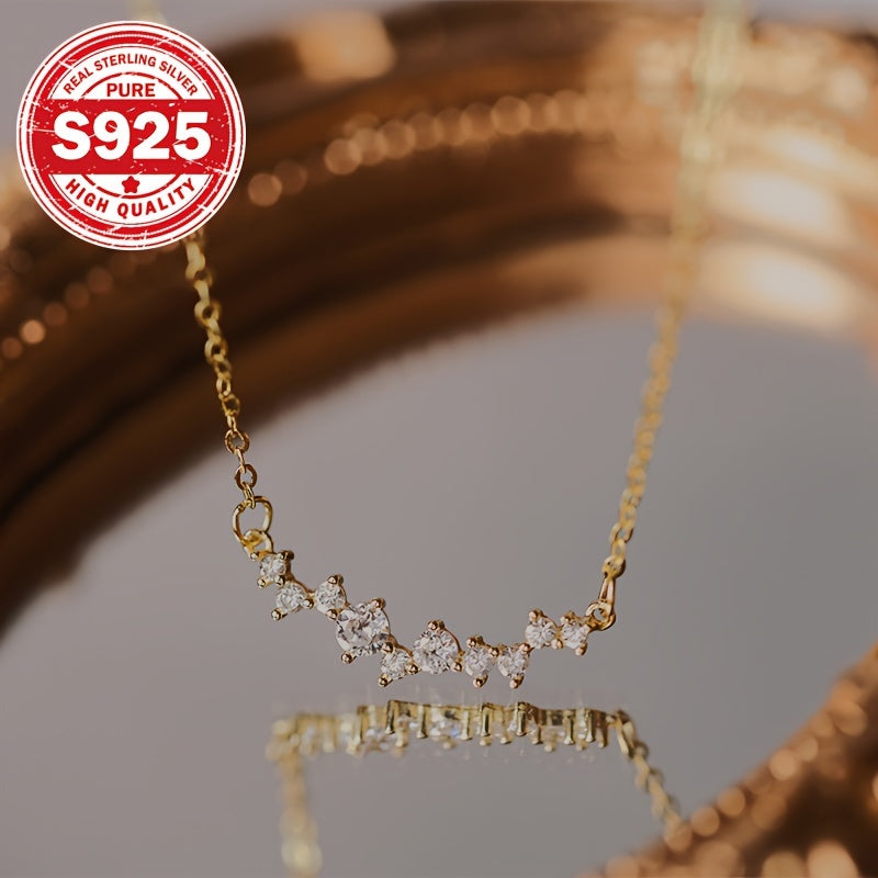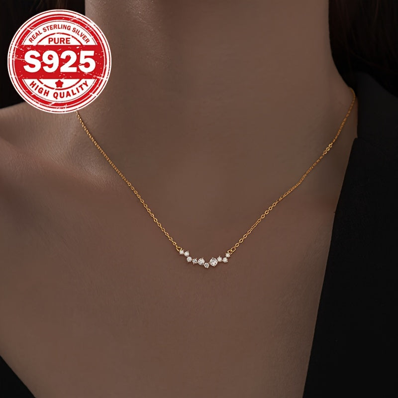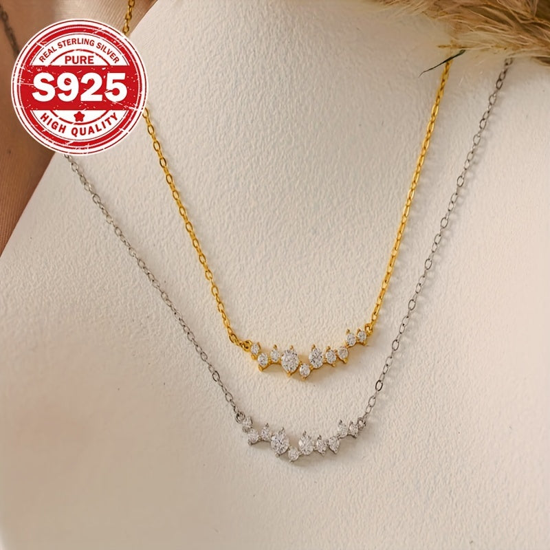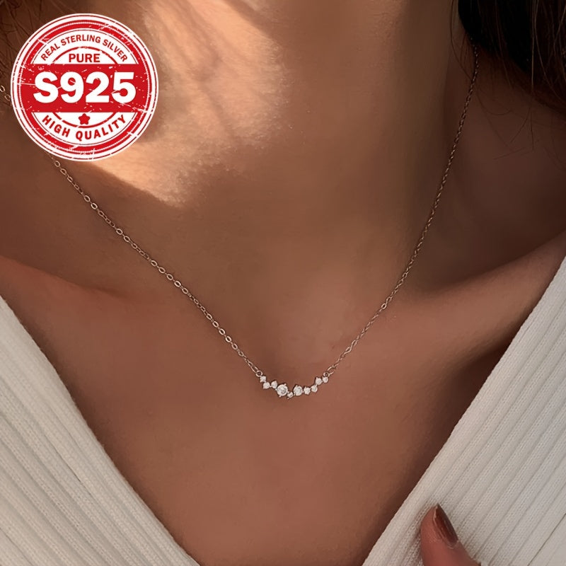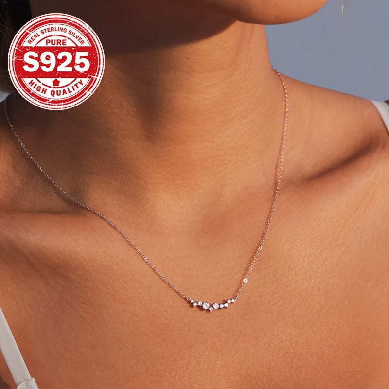 This stylish clavicle chain necklace is made of 925 silver, featuring a smile shape design. It is lightweight and low allergy, weighing only 2.1g.