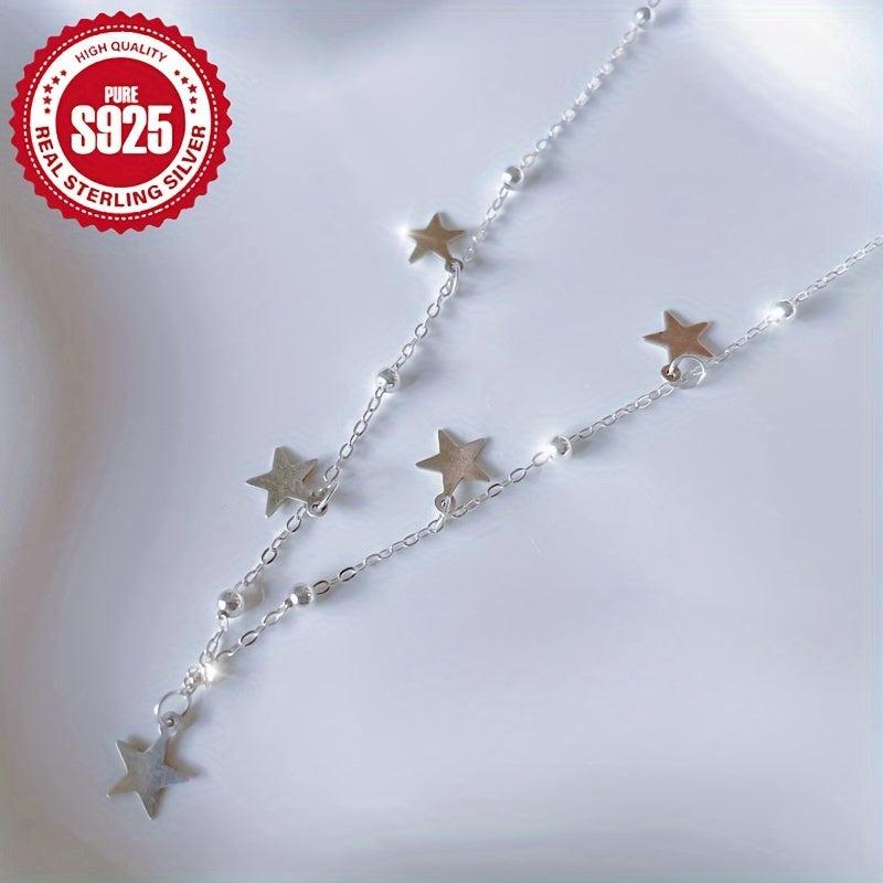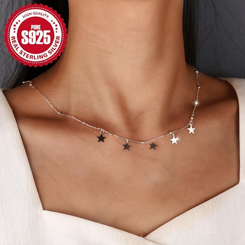 This 925 pure silver star charm necklace is perfect for teachers, graduates, and all occasions. It features a celestial theme and is a durable and versatile accessory.
