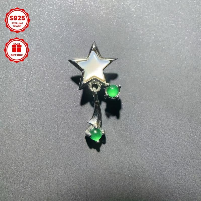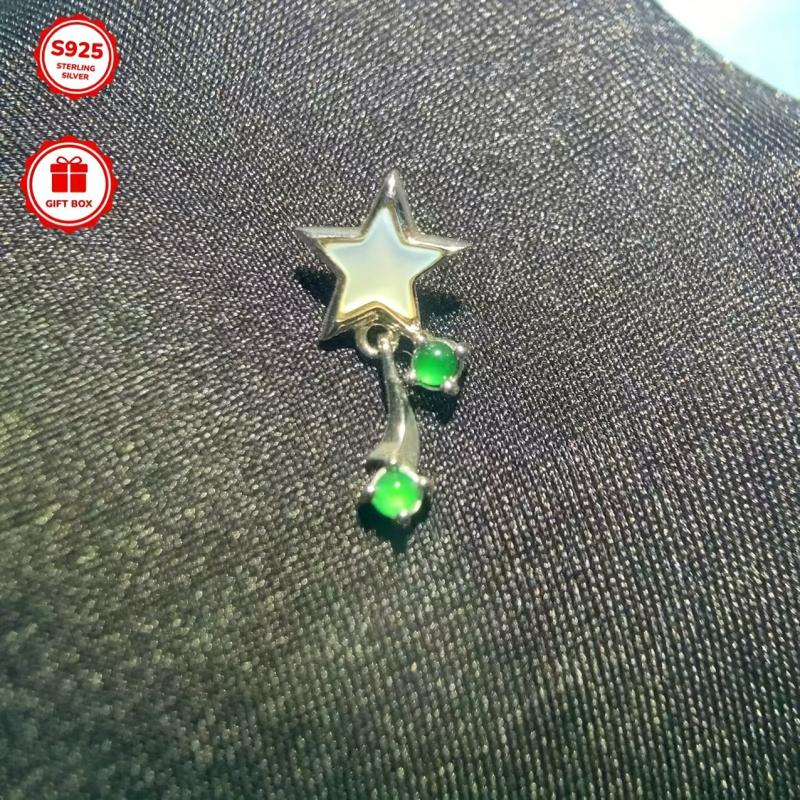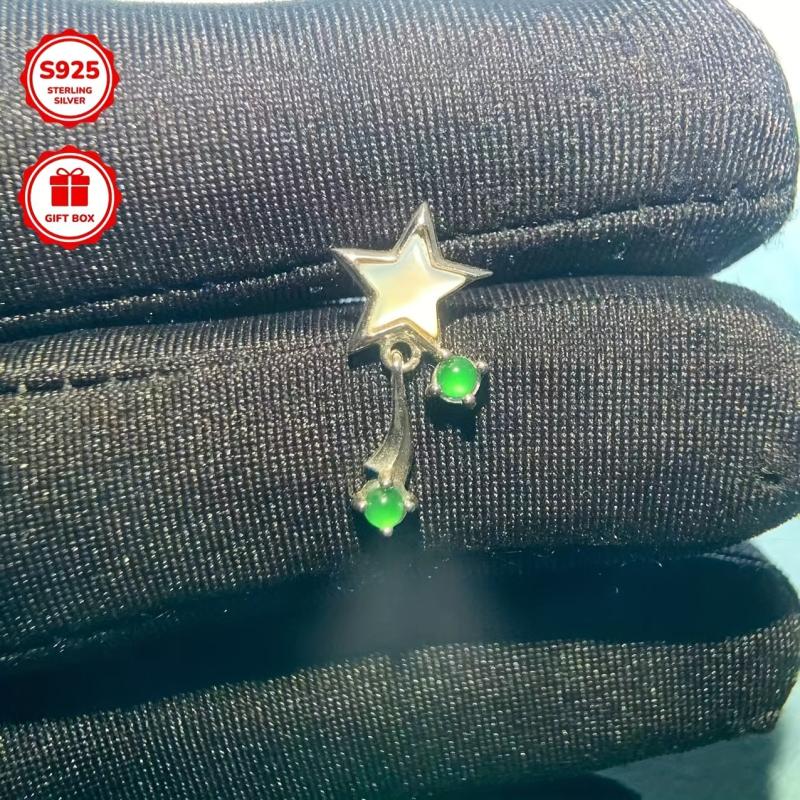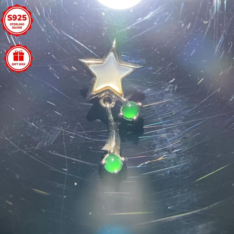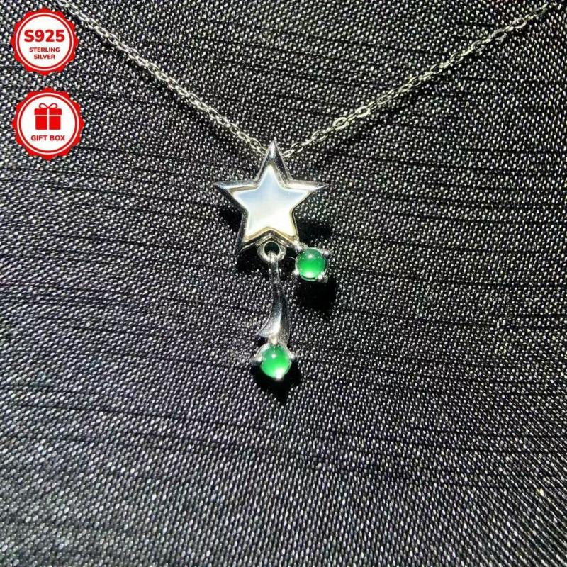 Elevate your style with this stunning 925 silver star pendant necklace adorned with natural birthstones in green and clear gemstones.
