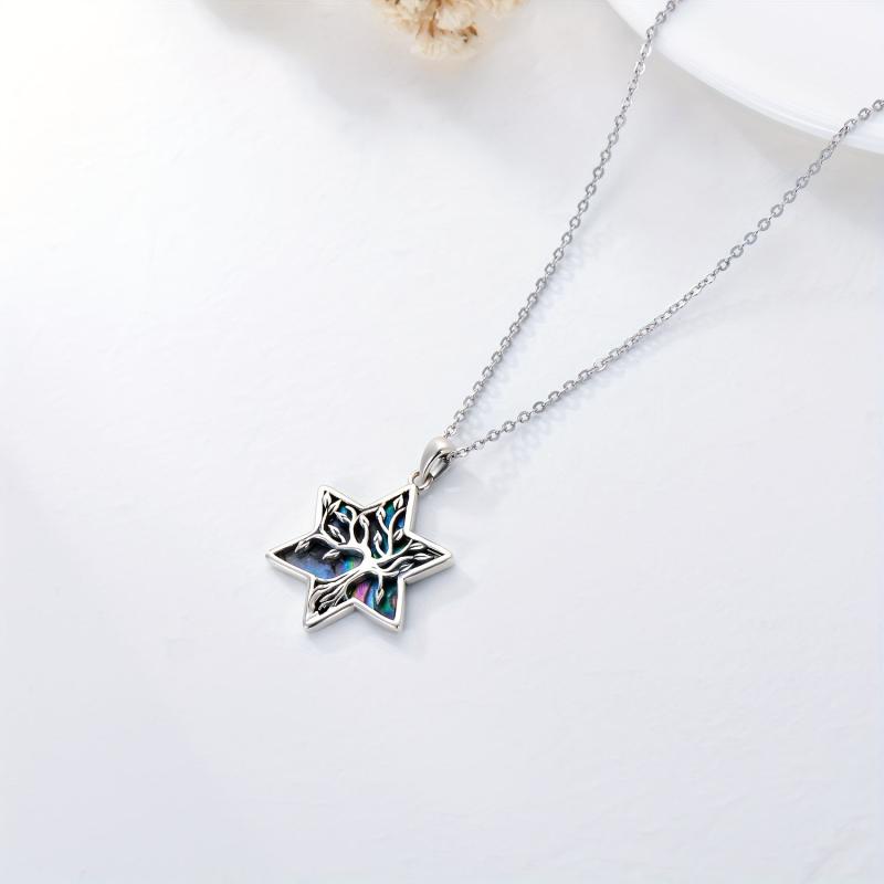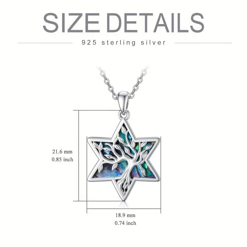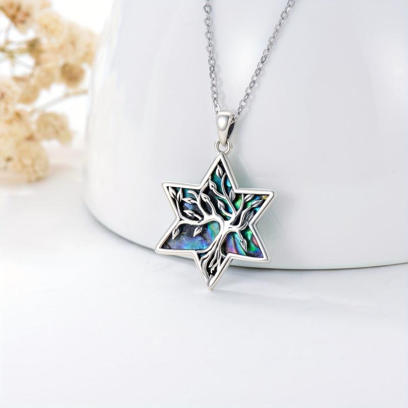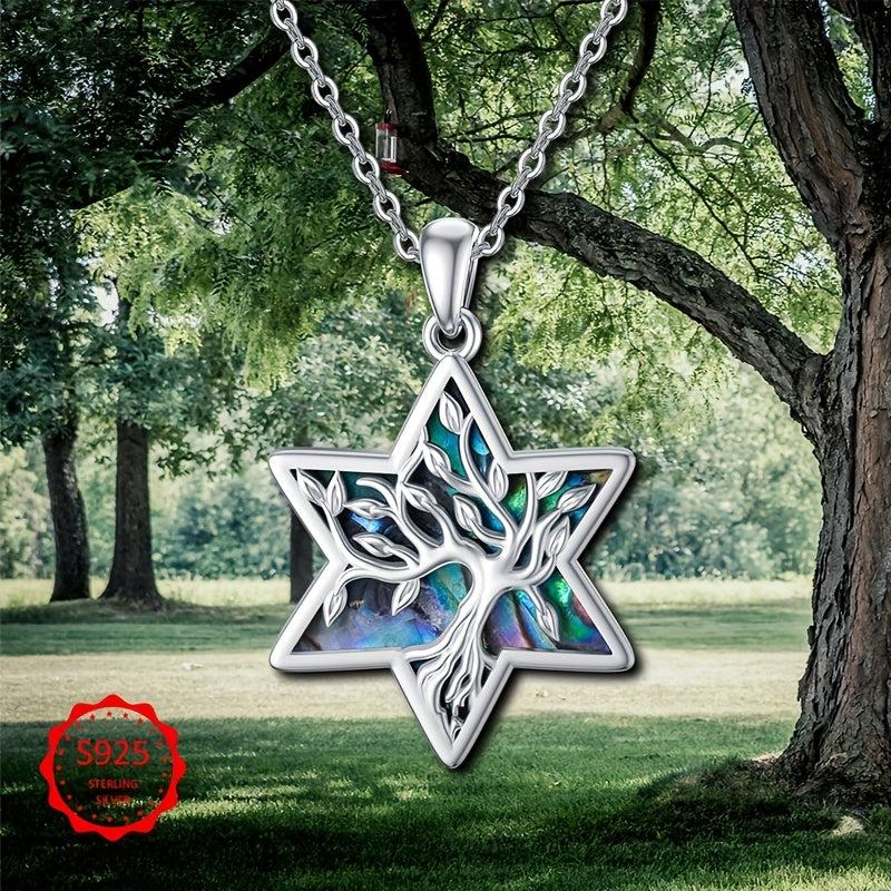 This elegant women's jewelry piece features a tree of life necklace made of 925 sterling silver with a stunning star of David pendant crafted from abalone shell.