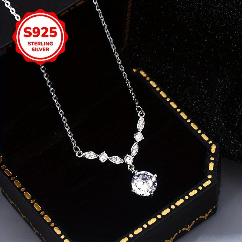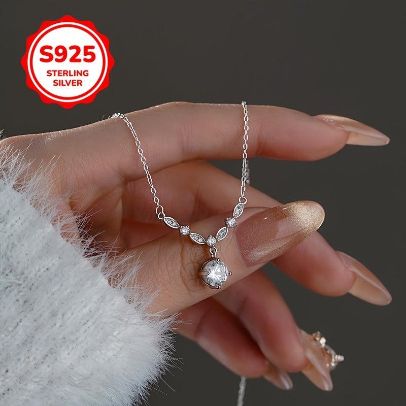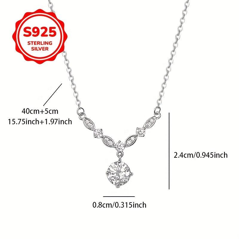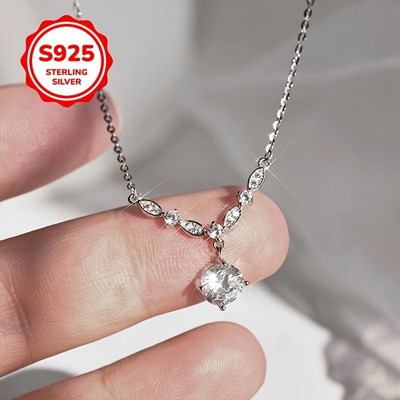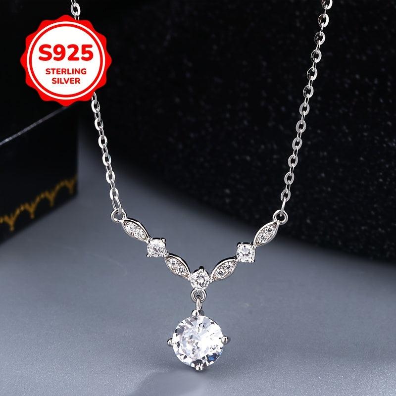 This elegant necklace features a V-shaped pendant adorned with sparkling synthetic zirconia, made from hypoallergenic 925 silver. Perfect for various occasions.