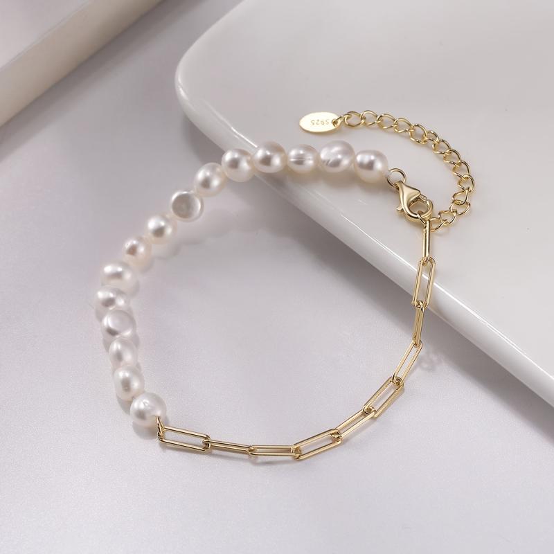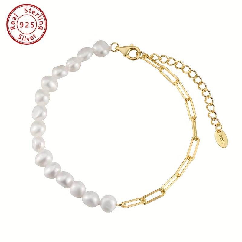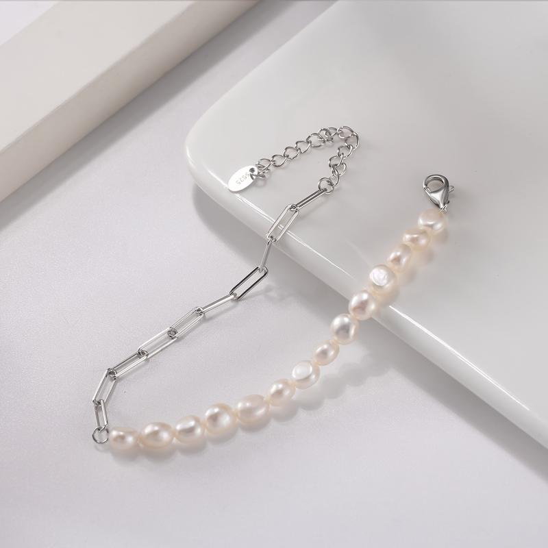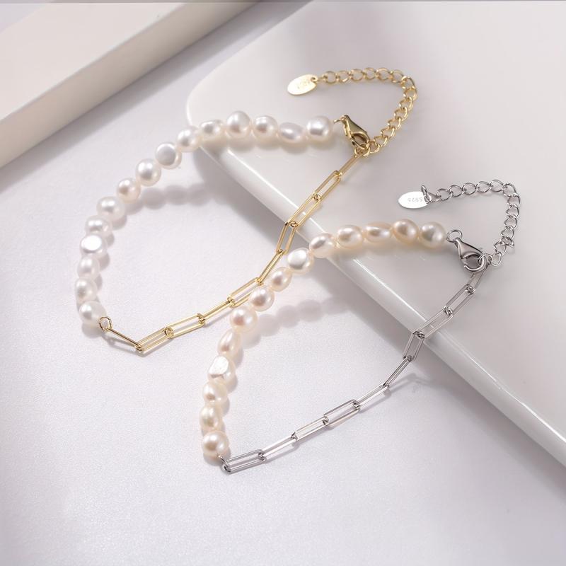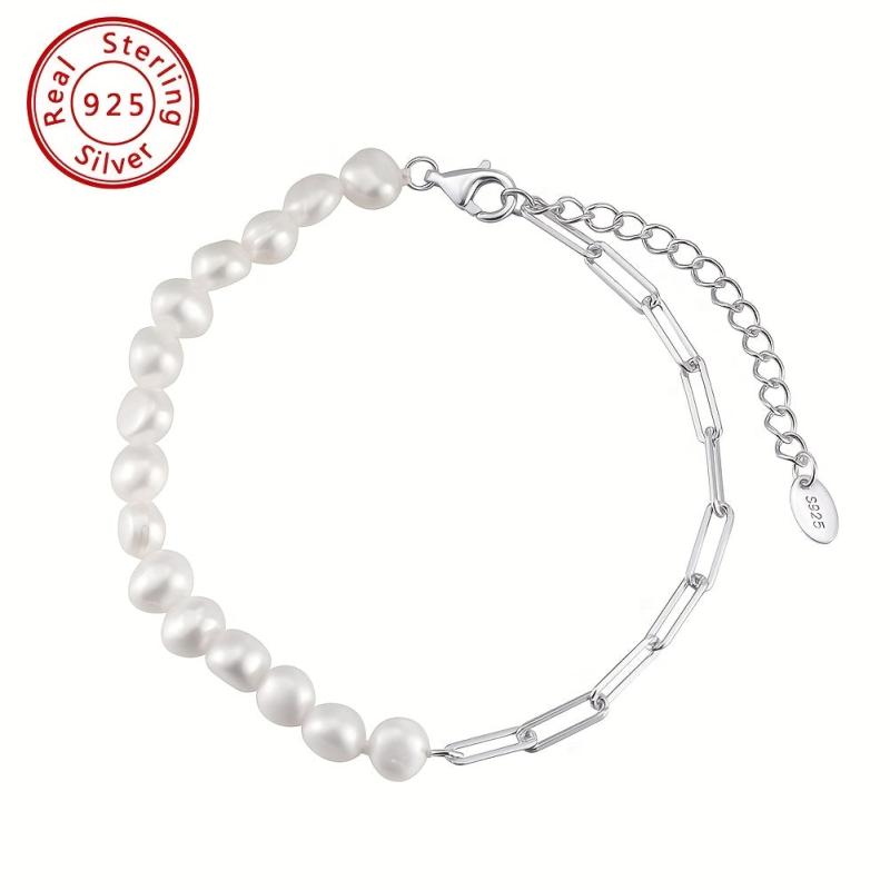 This elegant bracelet is crafted from 925 sterling silver and features a vintage paperclip chain design adorned with 4 natural freshwater pearls. A perfect jewelry gift for women.