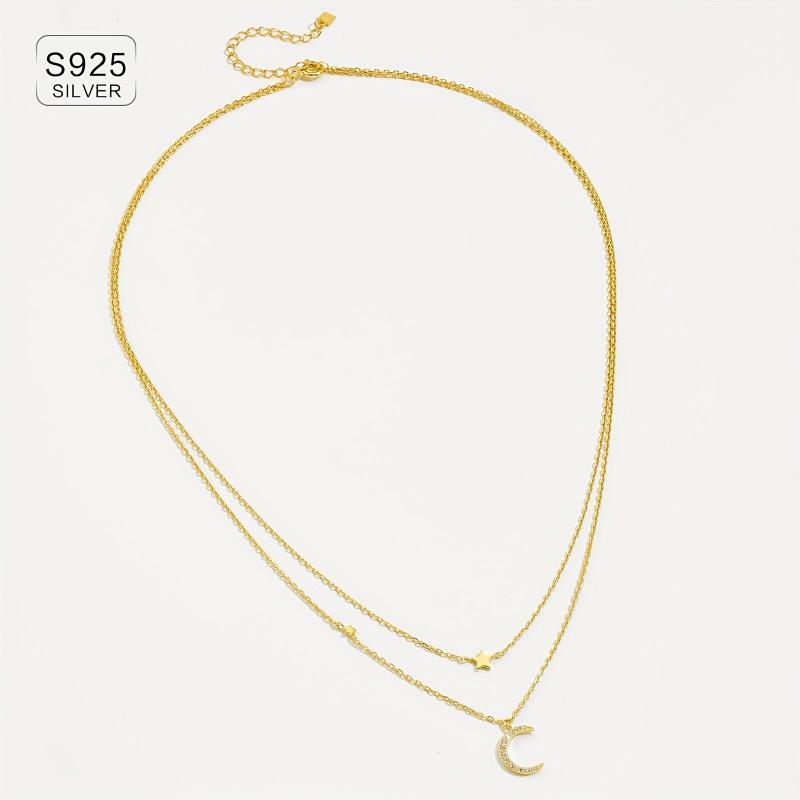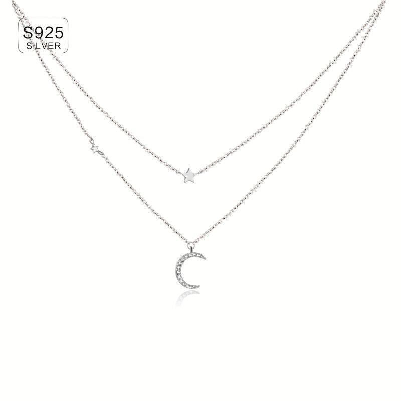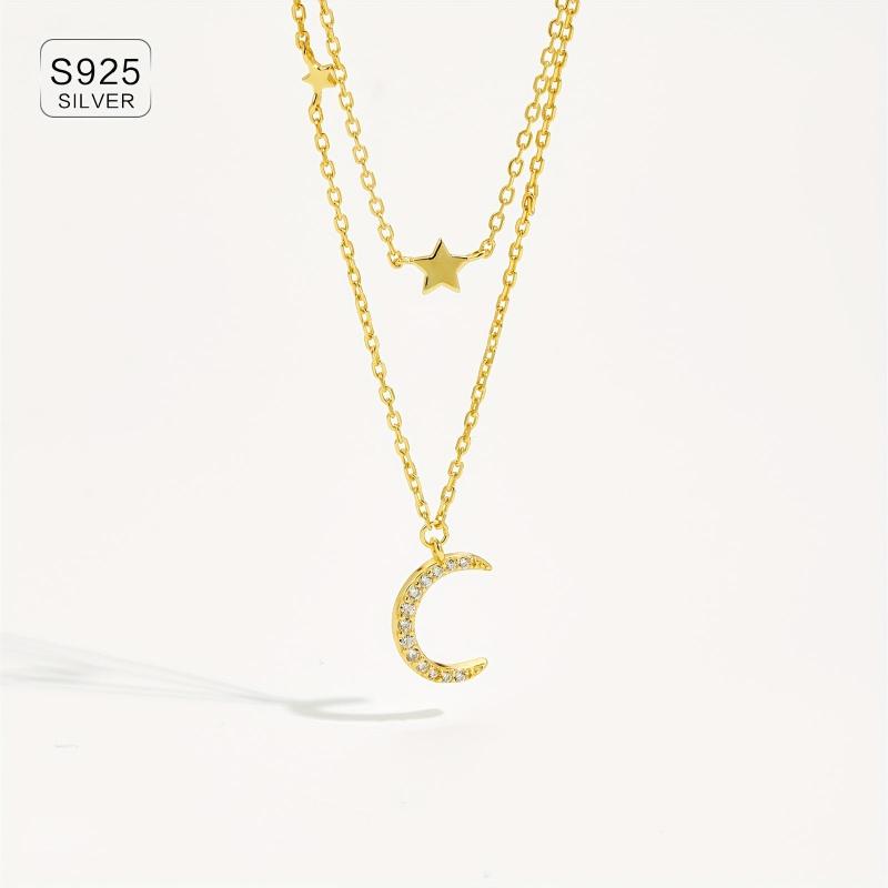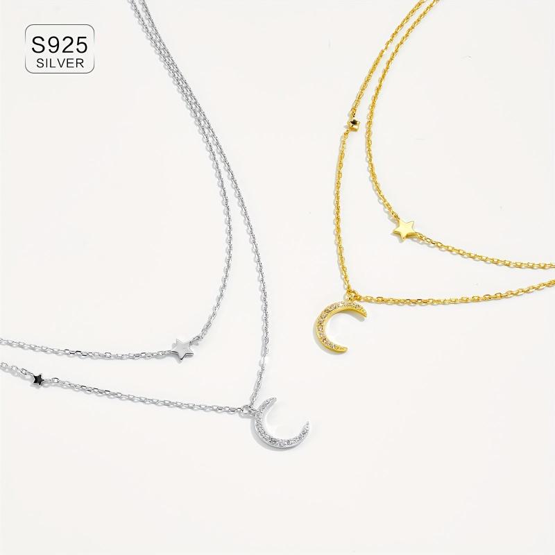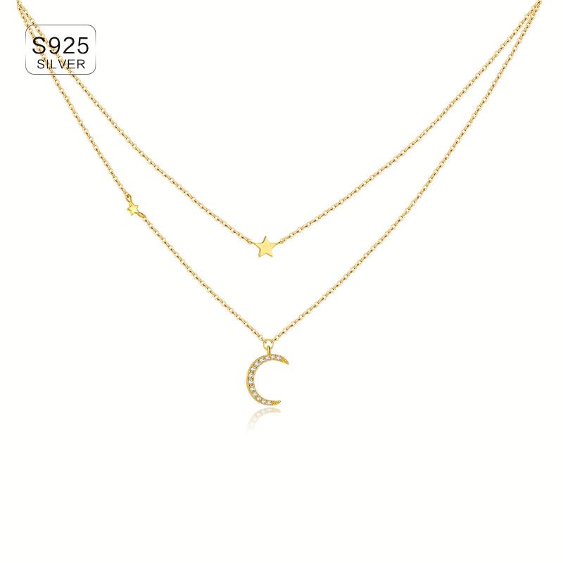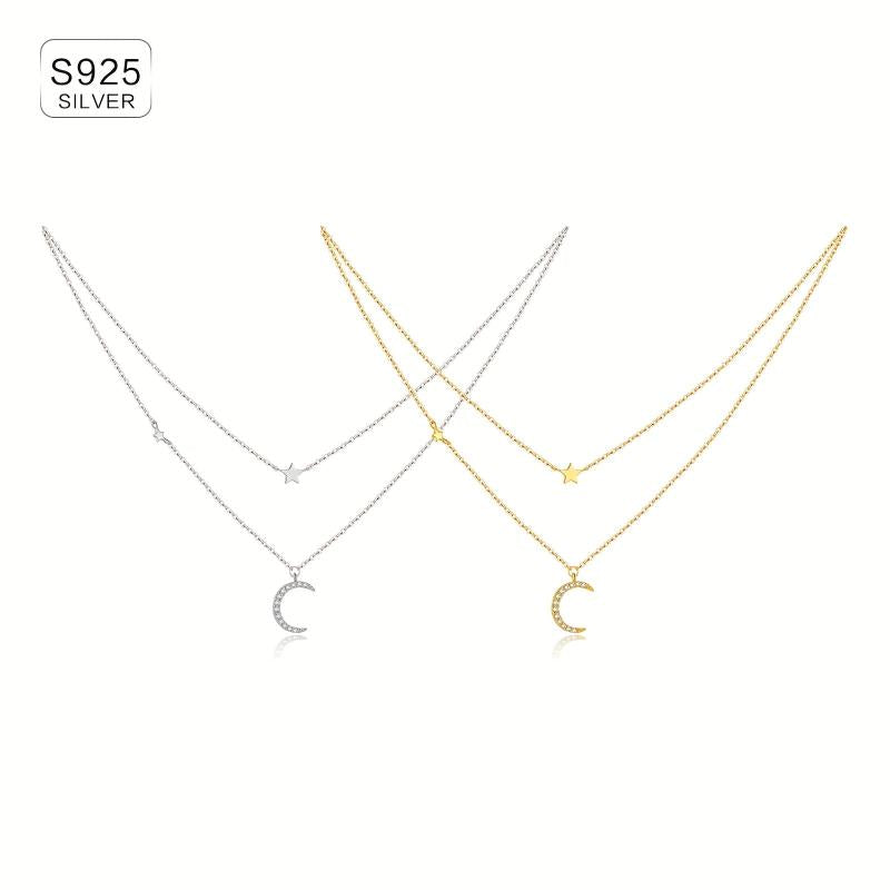 Elegant and versatile layered necklaces featuring sparkling cubic zirconia star and moon charms. Perfect for daily wear or adding a touch of glam to your party outfit.