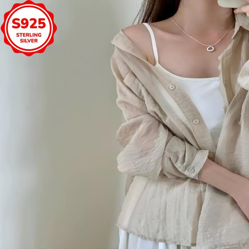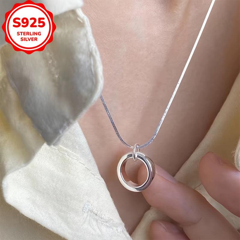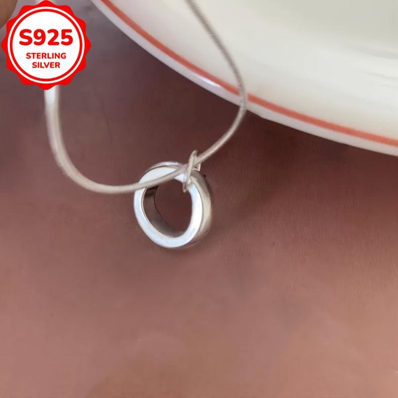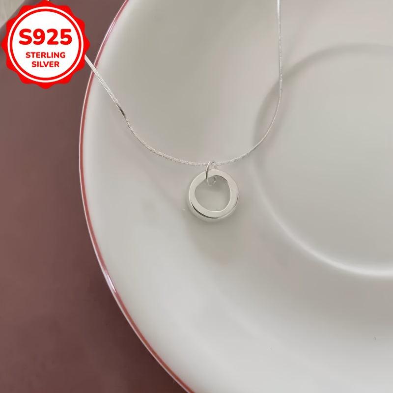 925 Sterling Silver Round Necklace Snake Chain Minimalist Design