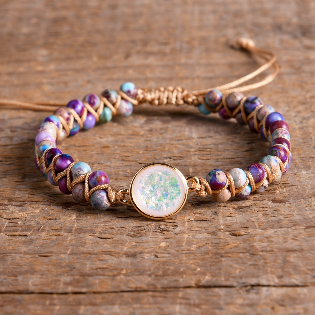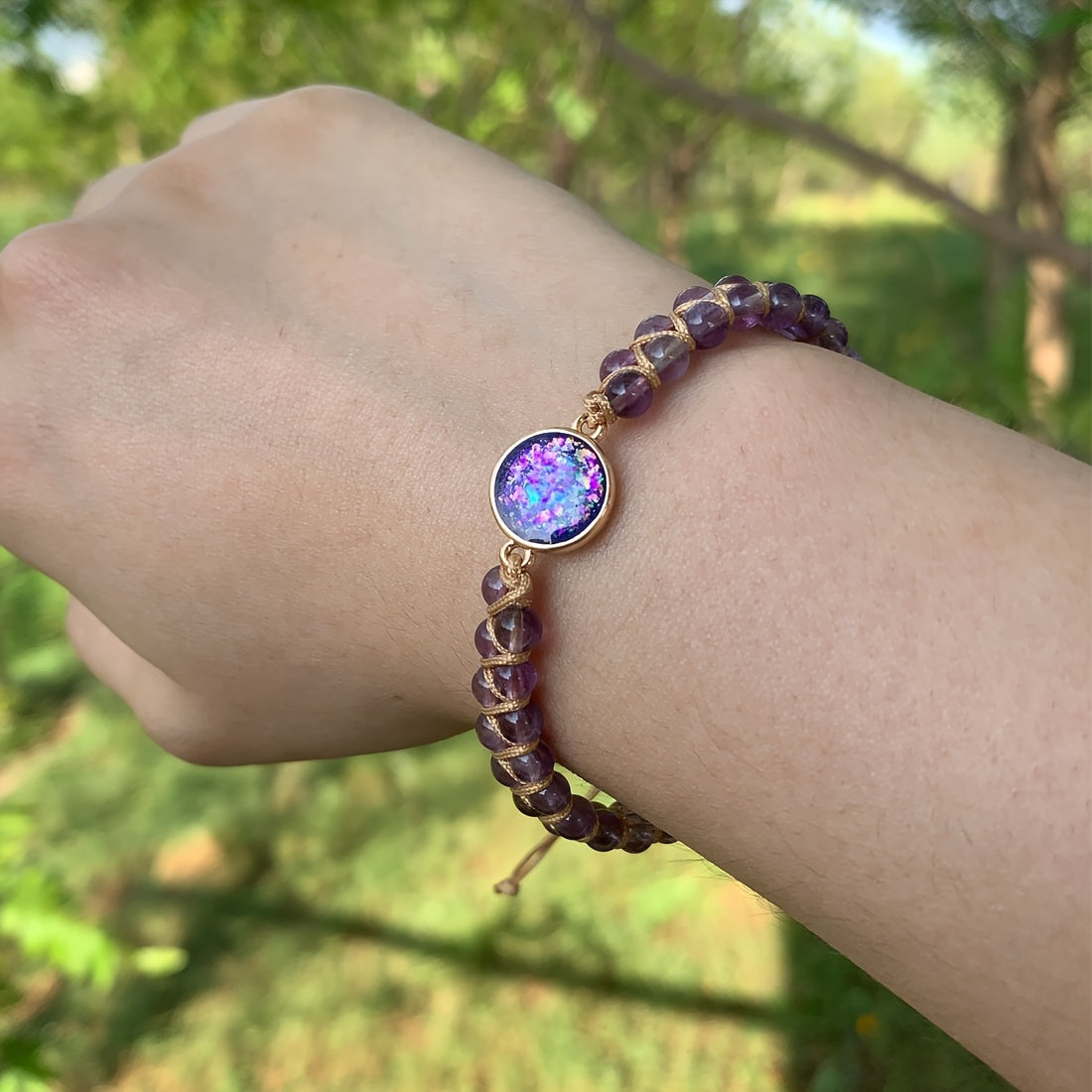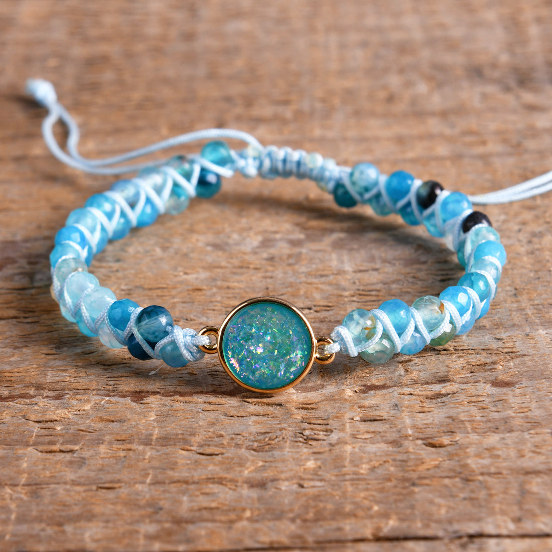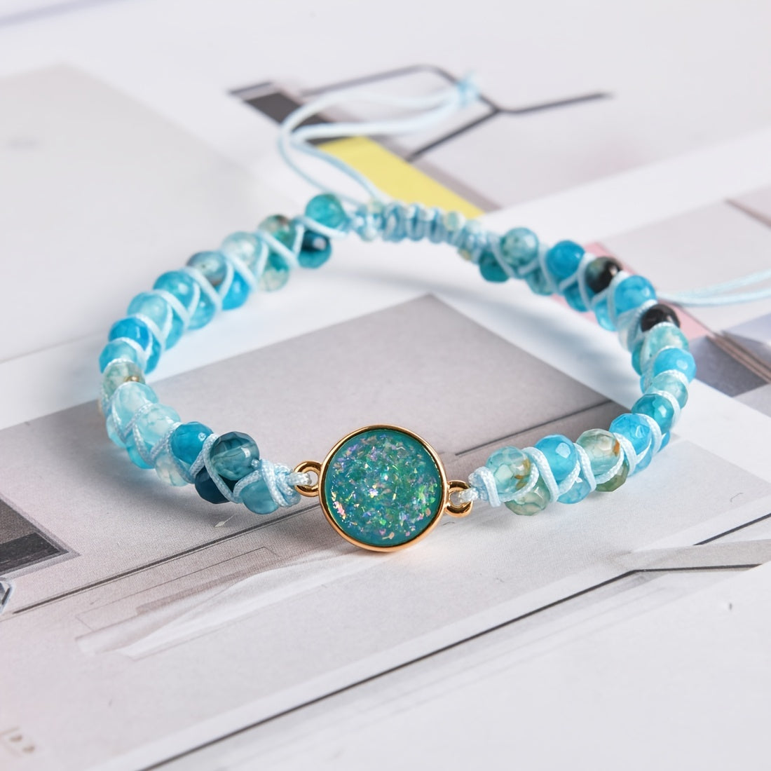 This double layer adjustable bracelet is designed to provide anxiety relief and promote healing during yoga practices. It features geometric beads that add a stylish touch to your outfit.