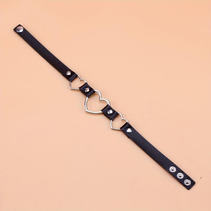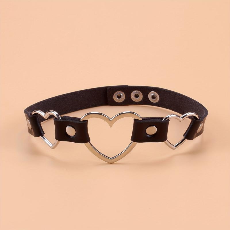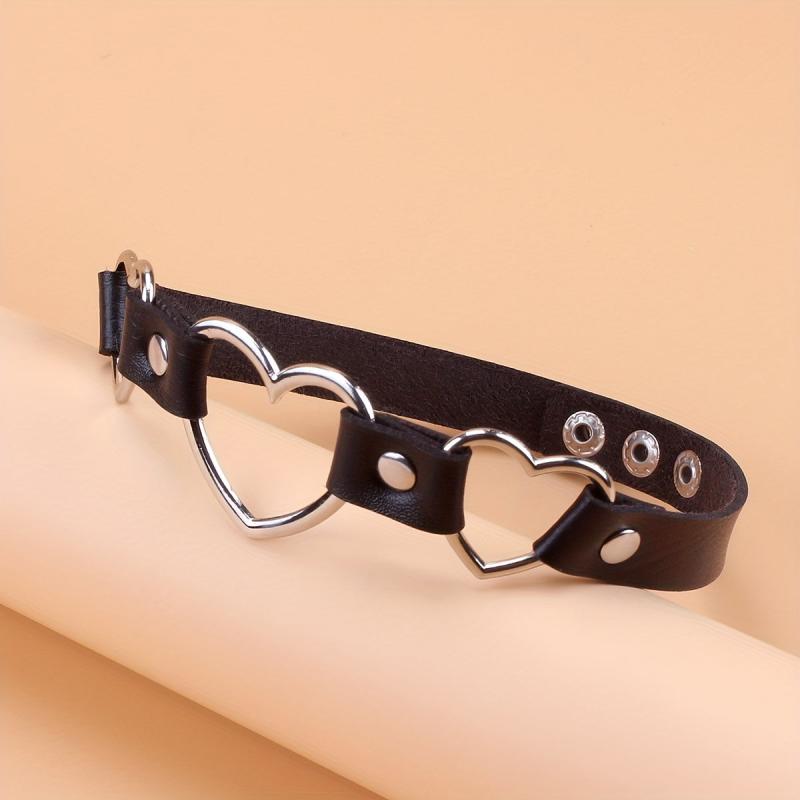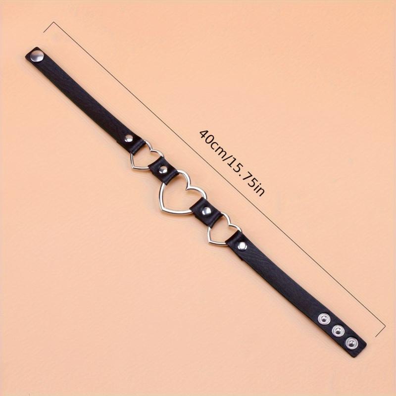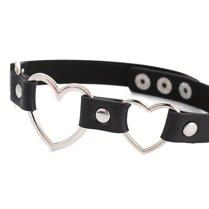 Add an edgy and sexy touch to your casual attire, parties, and music festivals with this adjustable PU leather choker necklace featuring interlocking heart charms. Perfect as a gift for couples.