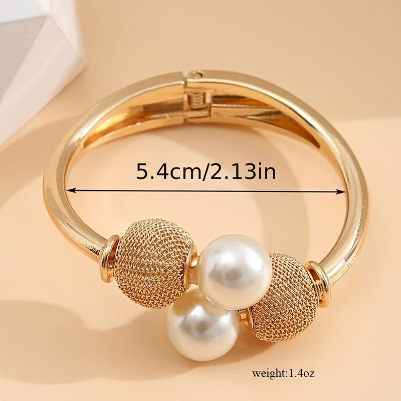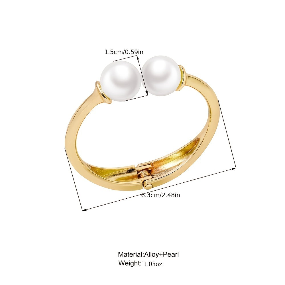 Elegant open bangle bracelet with oversized faux pearls, perfect for adding a touch of sophistication to any outfit. Ideal for women and girls with a refined sense of style.
