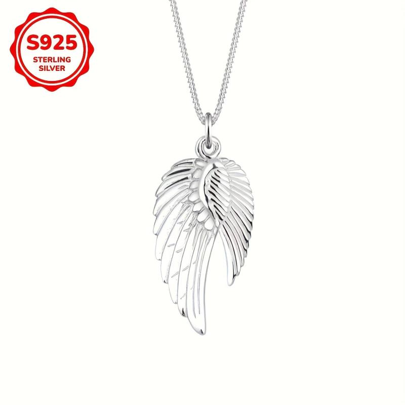 Elegant and lightweight pendant necklace crafted from pure S925 silver, showcasing angel wings design. Ideal for daily wear and makes a thoughtful holiday gift for your girlfriend.