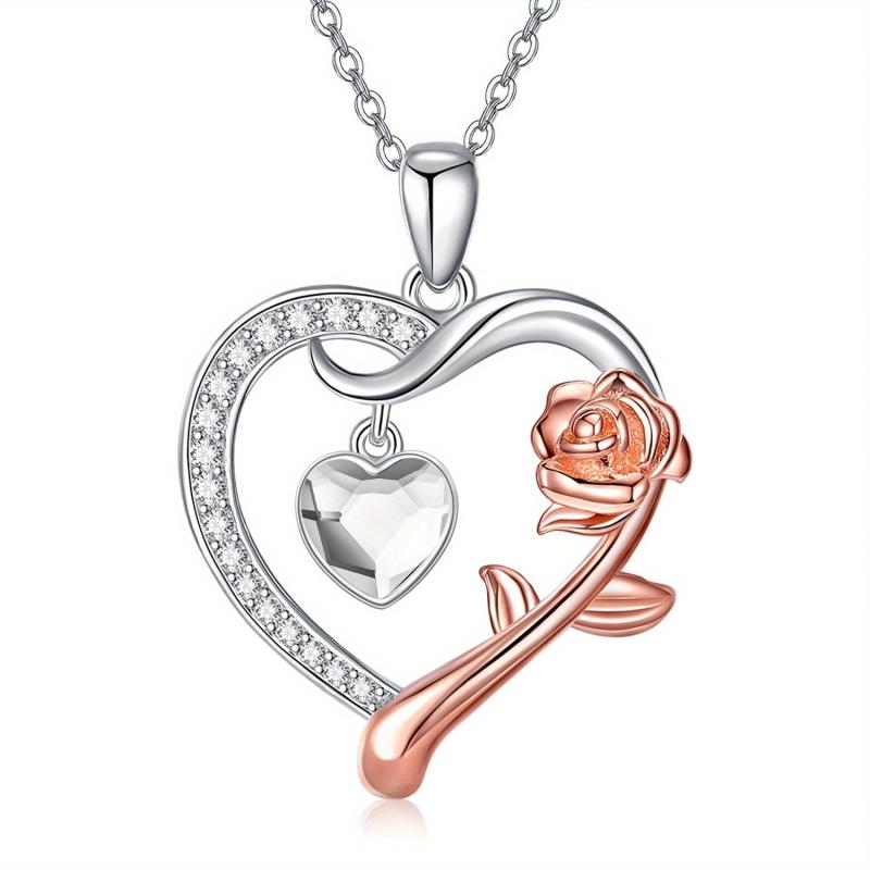 This stunning birthstone necklace features a heart-shaped rose golden pendant crafted from 925 sterling silver. It is the perfect gift for any woman born in April.
