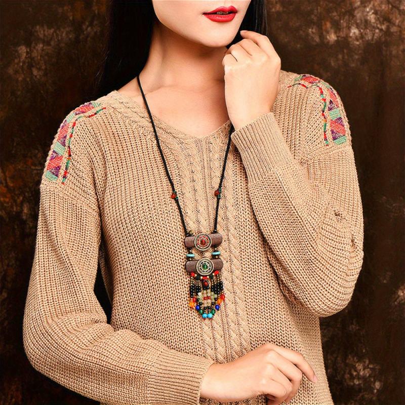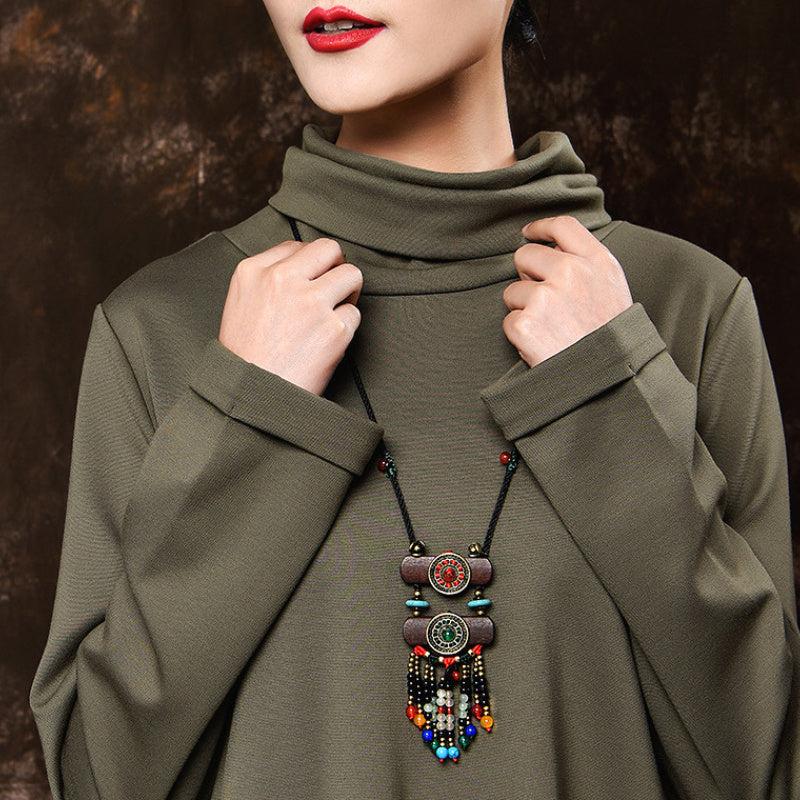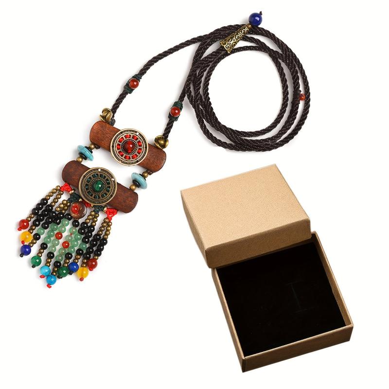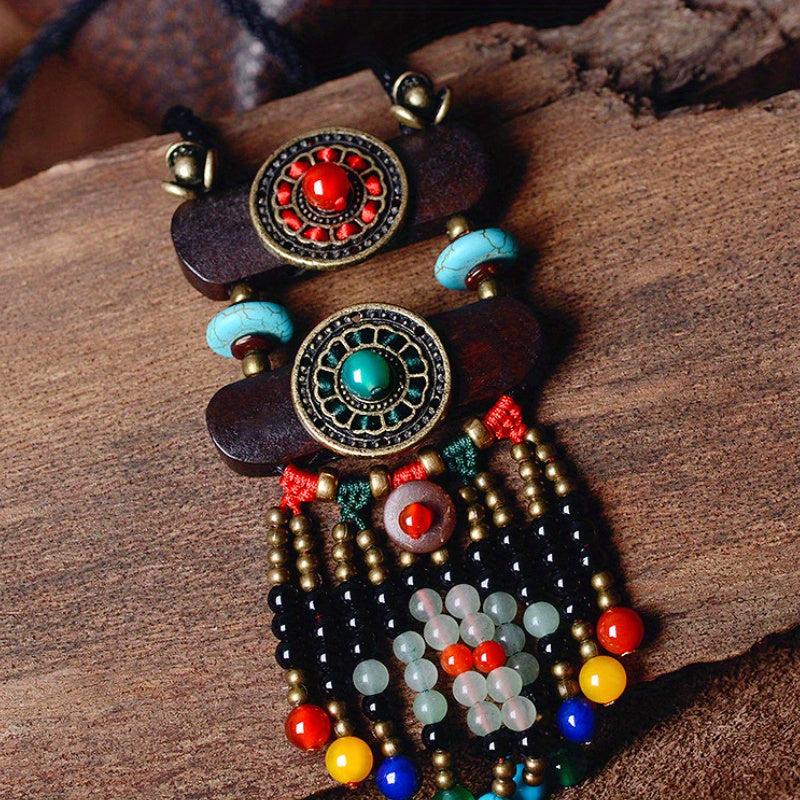 Enhance your style with this vibrant tassel necklace featuring a gradient of colorful beads. Perfect for daily wear, this ethnic bohemian necklace adds a touch of boho chic to any outfit.