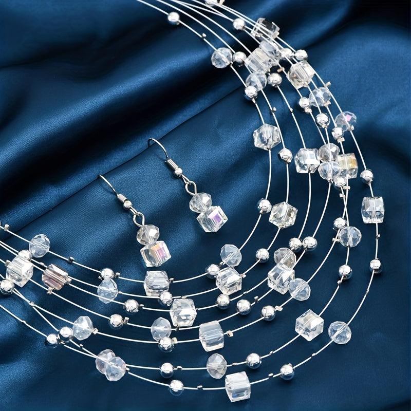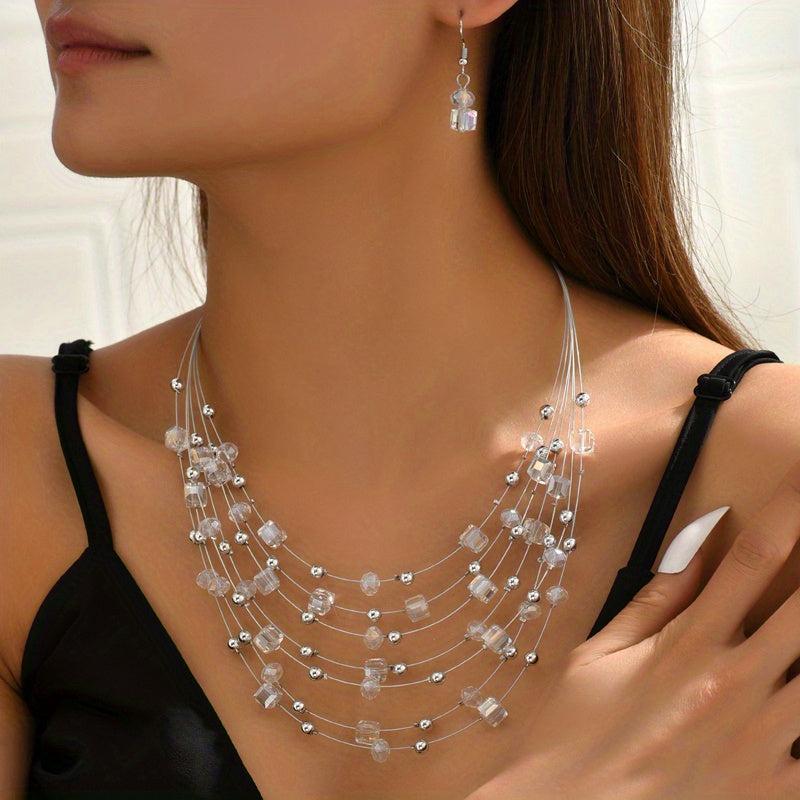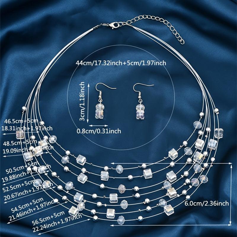 Elevate your look with this bohemian style jewelry set featuring layered necklace and earrings. Perfect for parties or as a festive gift.