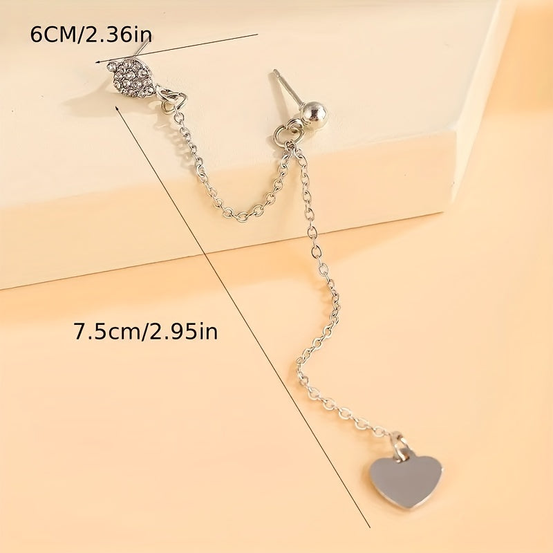 These retro bohemian style earrings feature a double silvery heart chain design that adds a touch of elegance to your look. Made from zinc alloy with silver plating, they are perfect for weddings and special occasions.