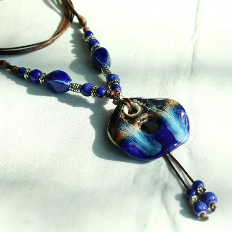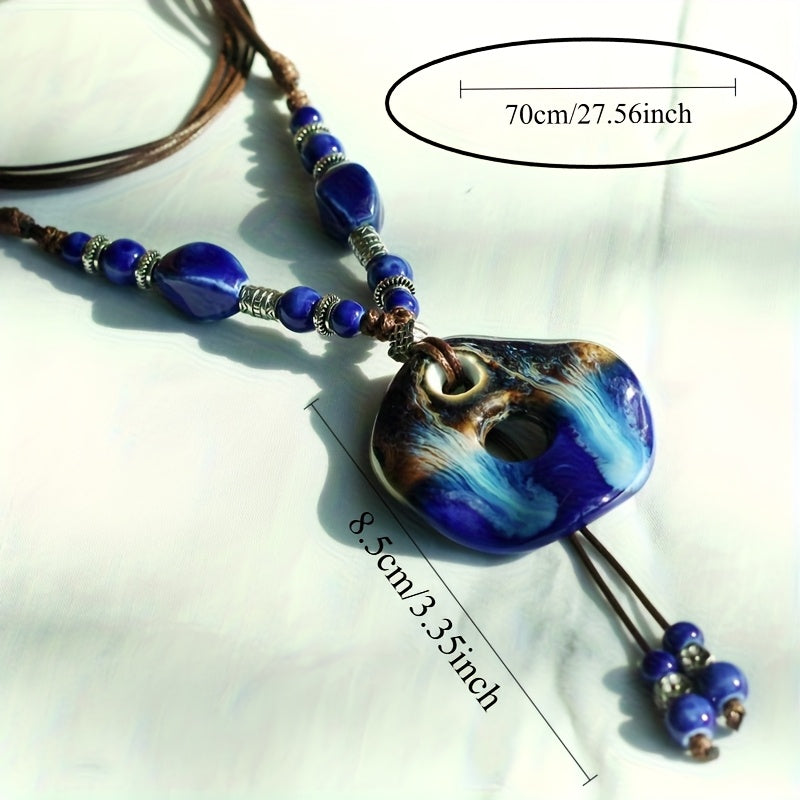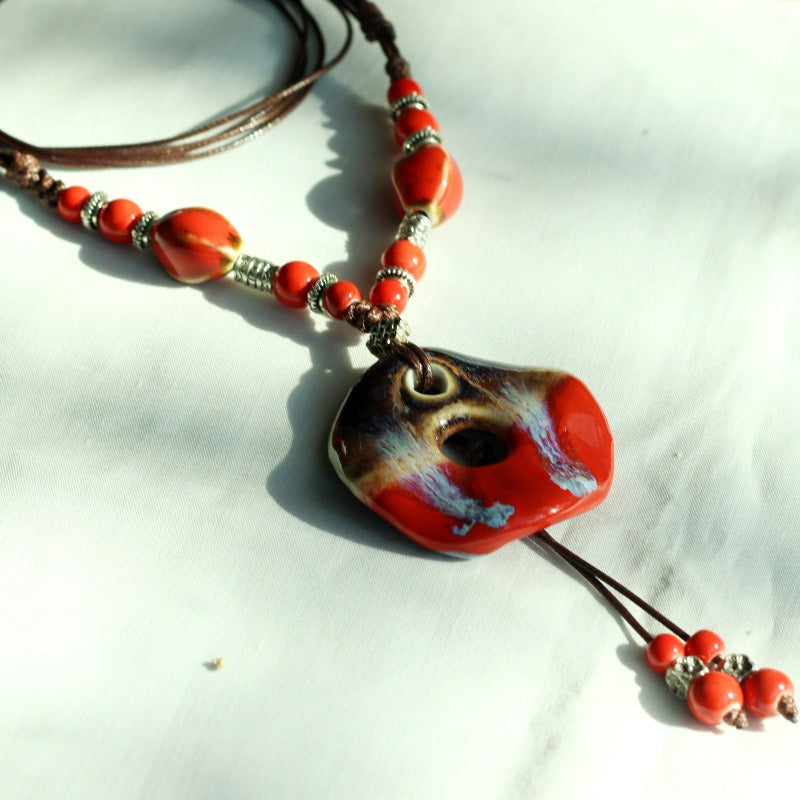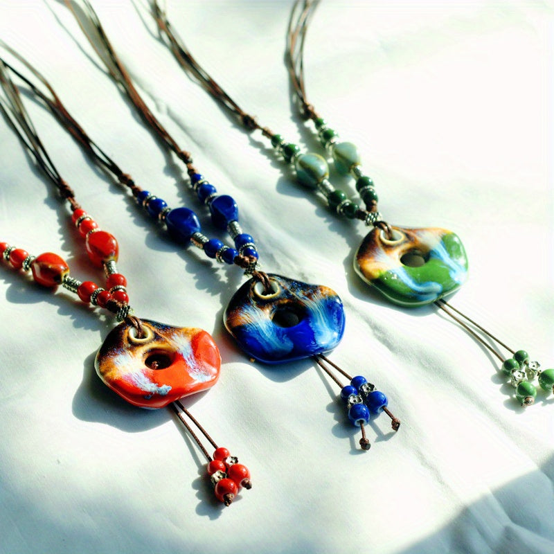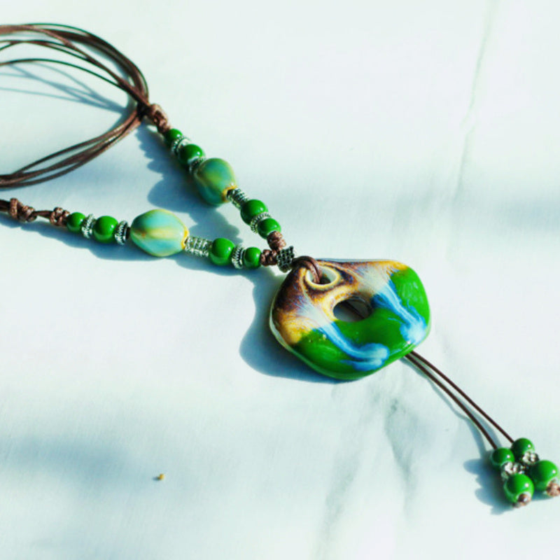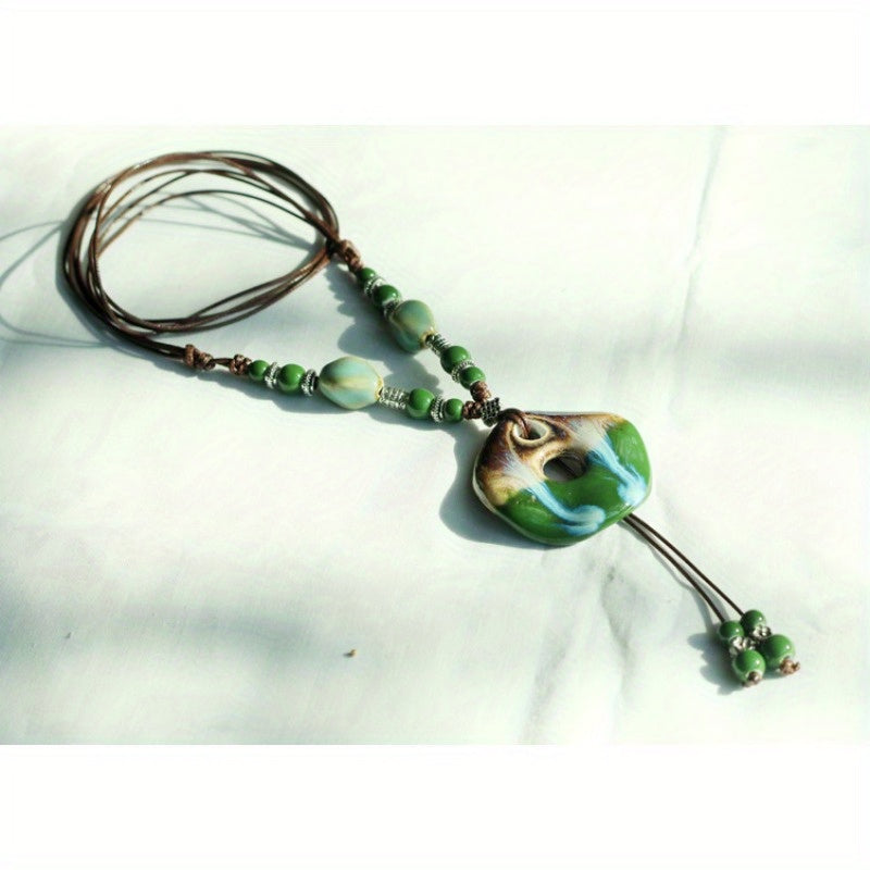 Elevate your style with this Jingdezhen Bohemian Long Necklace featuring a vibrant gourd pendant and a peace clasp. Perfect for daily wear and vacation accessorizing.