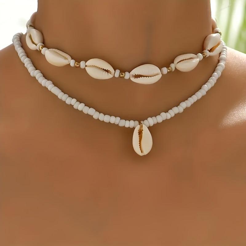 Elevate your style with this bohemian necklace set featuring artificial shell pendants. Perfect for parties, banquets, and daily wear.