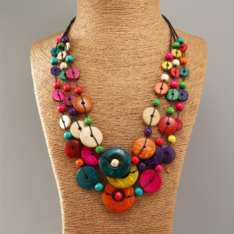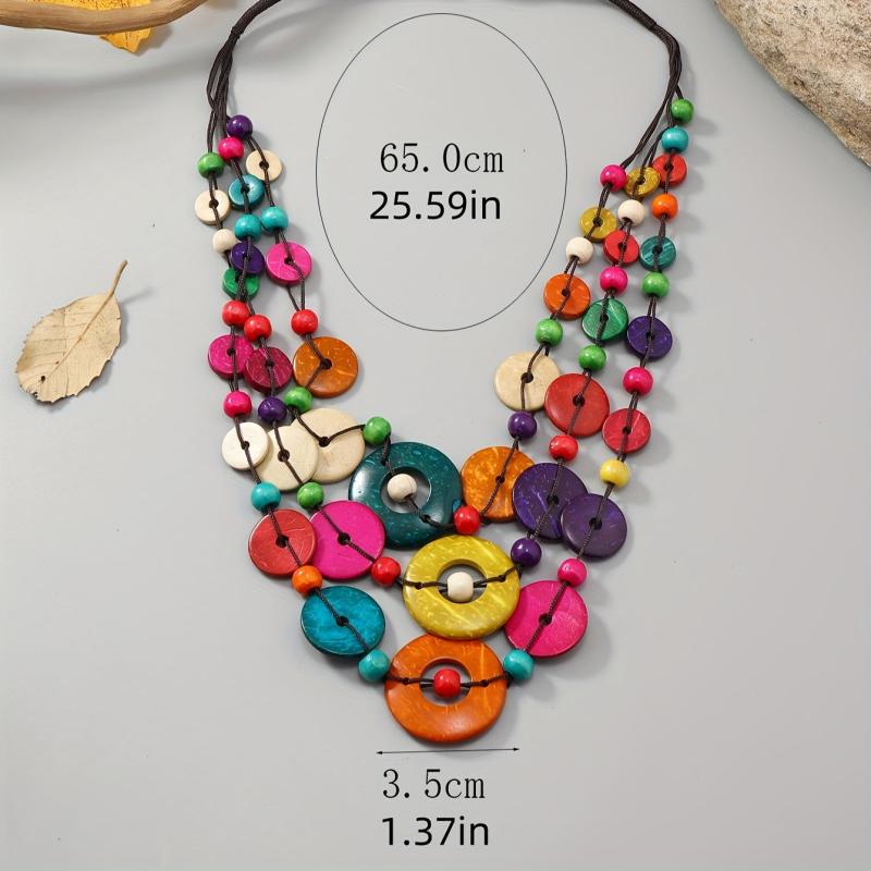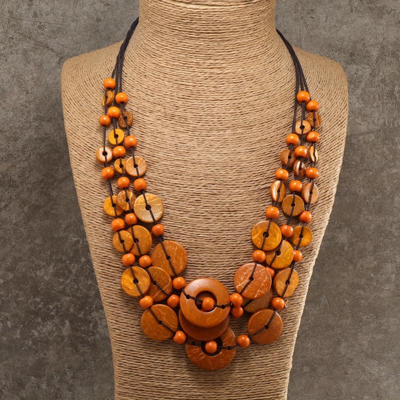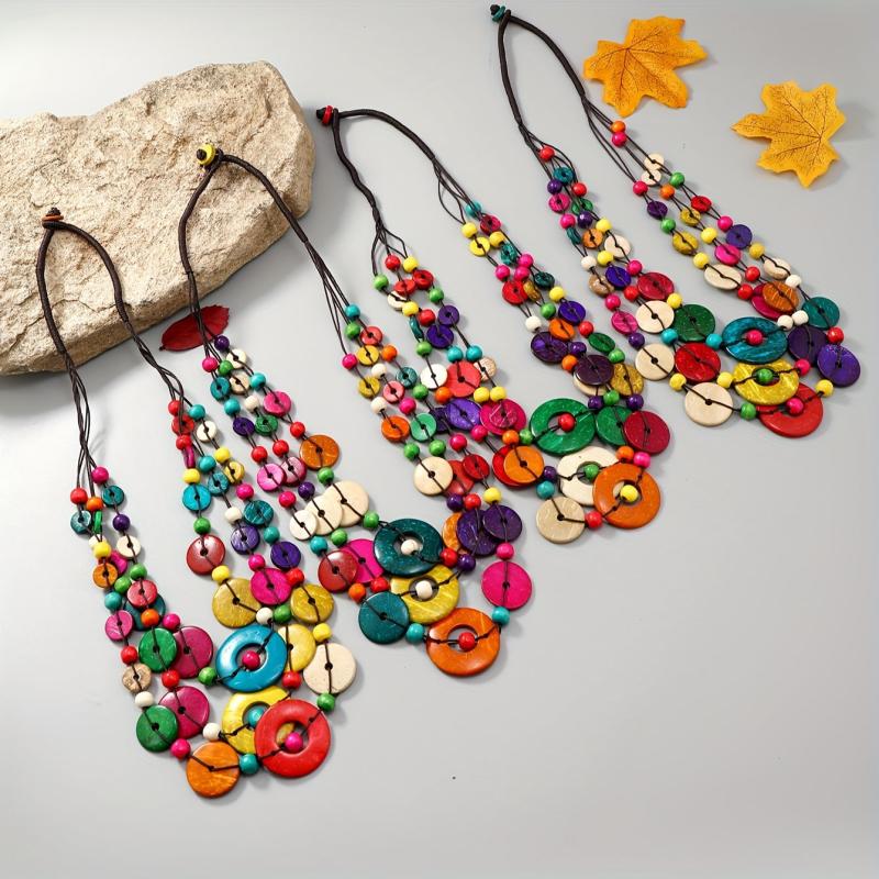 Bohemian Style Wooden Pendant Necklace Vintage Layer Coconut Shell