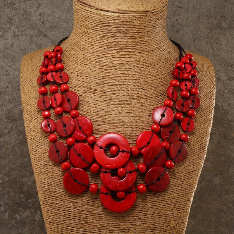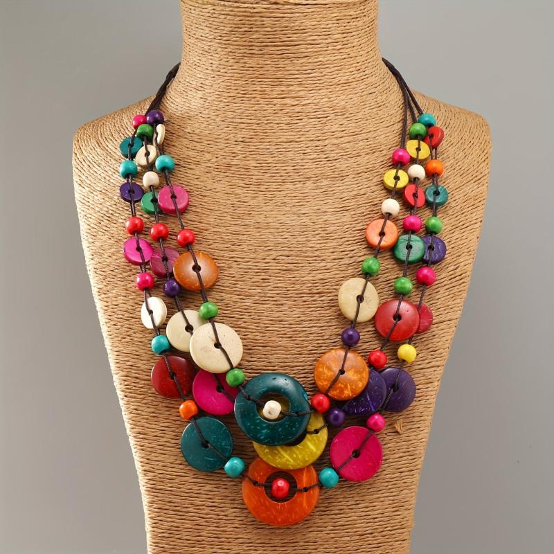 Handcrafted necklace made from coconut shell with a bohemian style design. Perfect for daily wear and music occasions, suitable for all seasons.