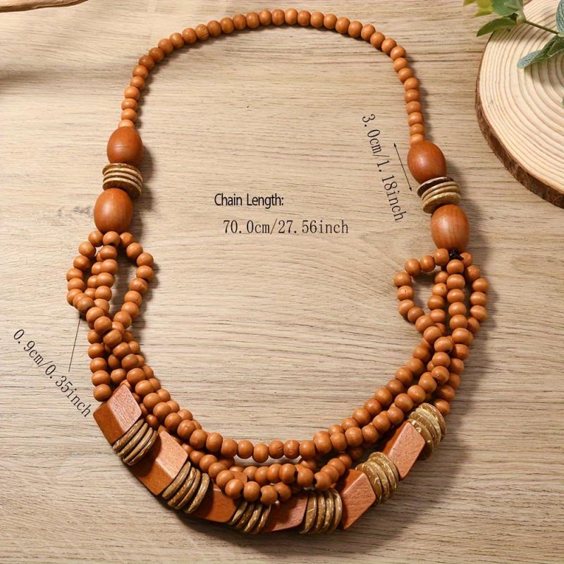 Add a touch of earthy charm with this handcrafted recycled wood bead necklace. Vintage bohemian style for a unique look.