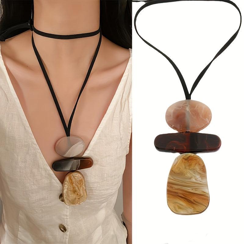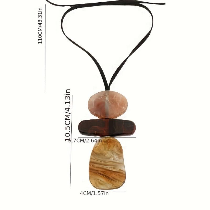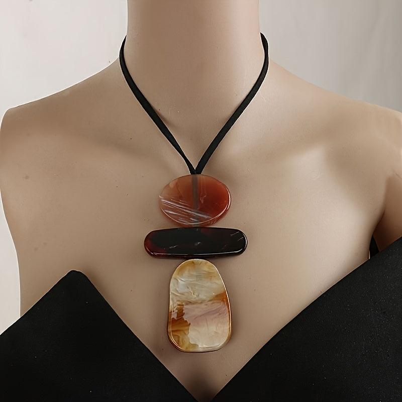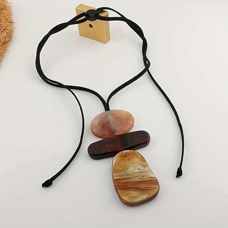 This pendant necklace is a perfect accessory for women to wear year-round. It features a bohemian vintage design with a geometric resin pendant and rope. Ideal for daily wear or as a gift for someone special.