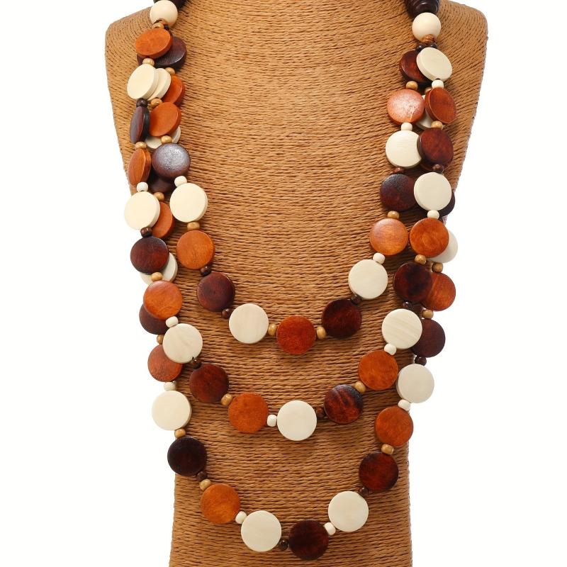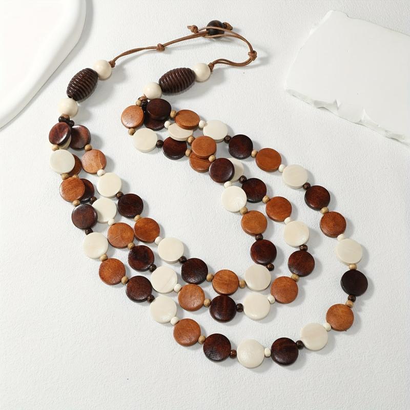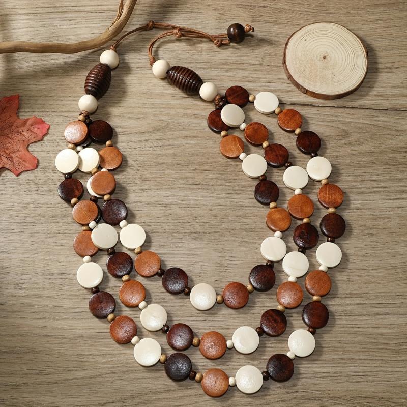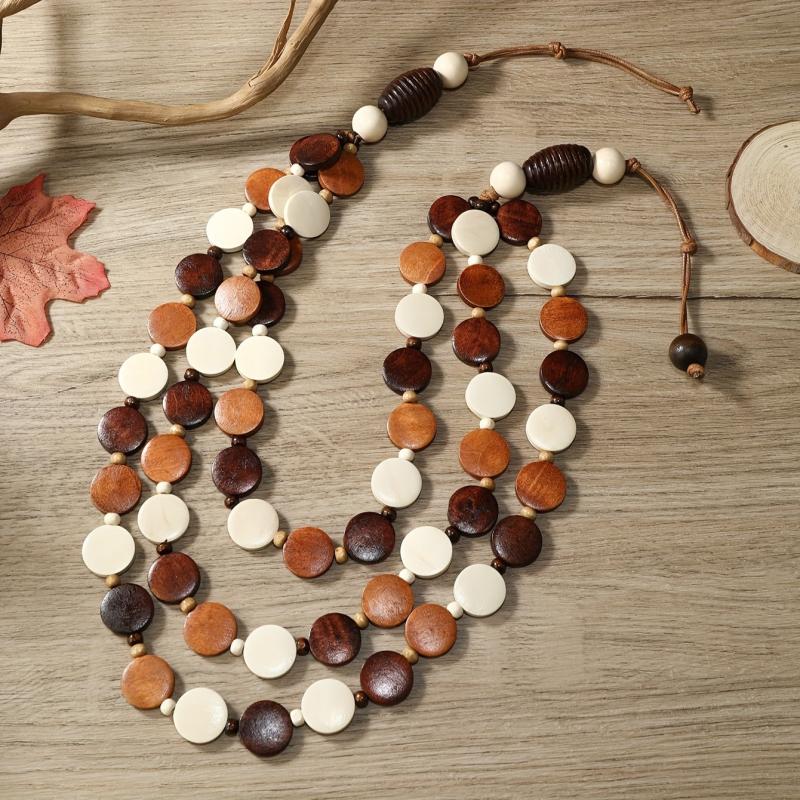 Handcrafted wooden beaded necklace that adds a vintage boho touch to your outfit. Versatile for daily wear and makes a great gift. Perfect accessory for all seasons.