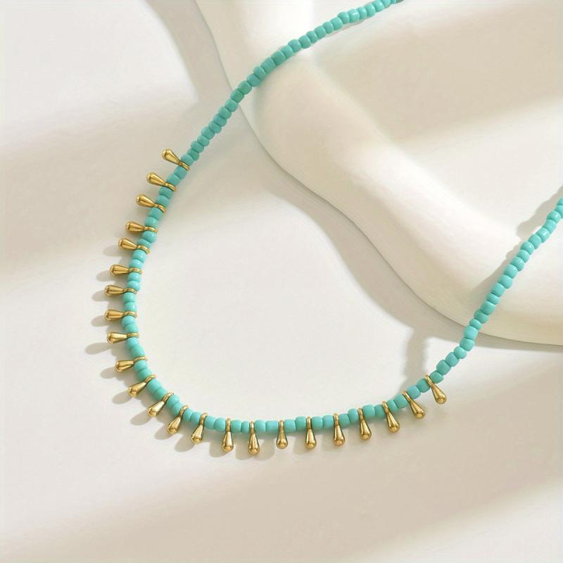Add a touch of Bohemian flair to your outfit with this vintage-style beaded necklace. Made from high-quality glass beads, this necklace is perfect for all seasons and occasions.