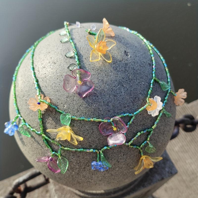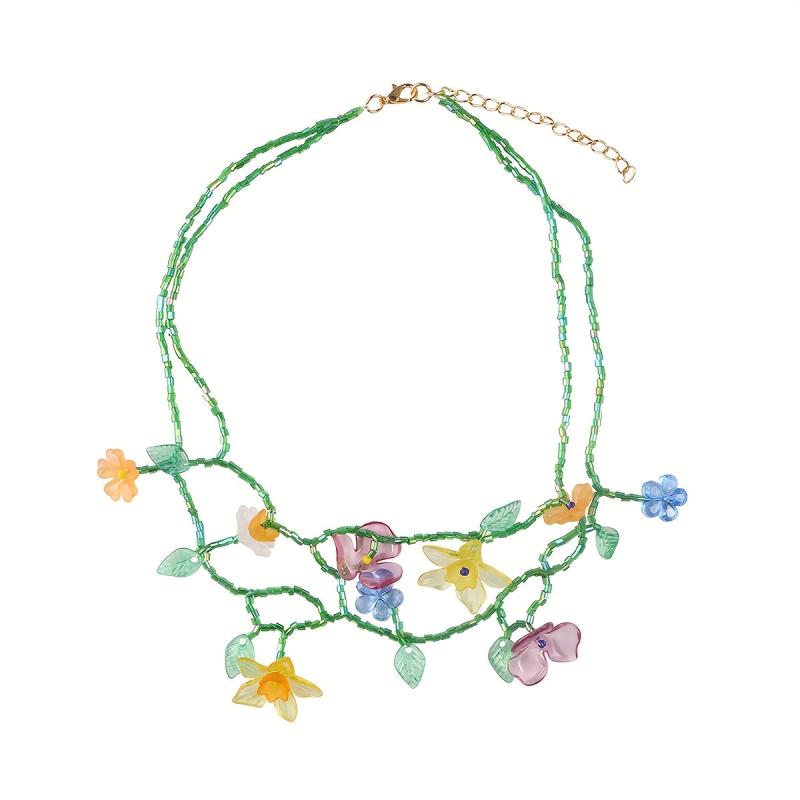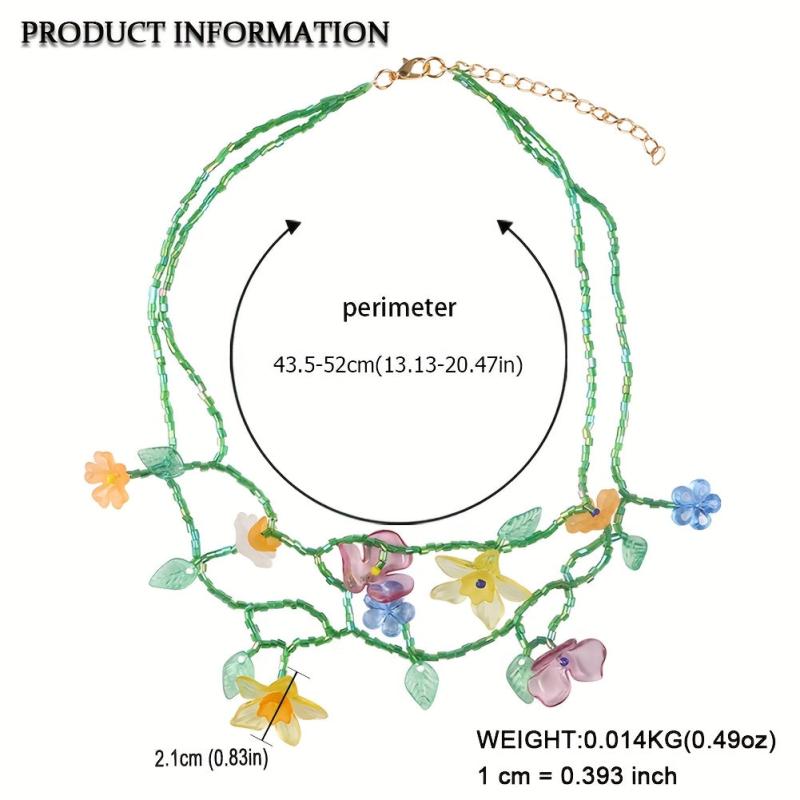 Add a touch of summer to your look with this lightweight Bohemian floral acrylic layered necklace. Perfect for the beach, parties, or year-round wear.