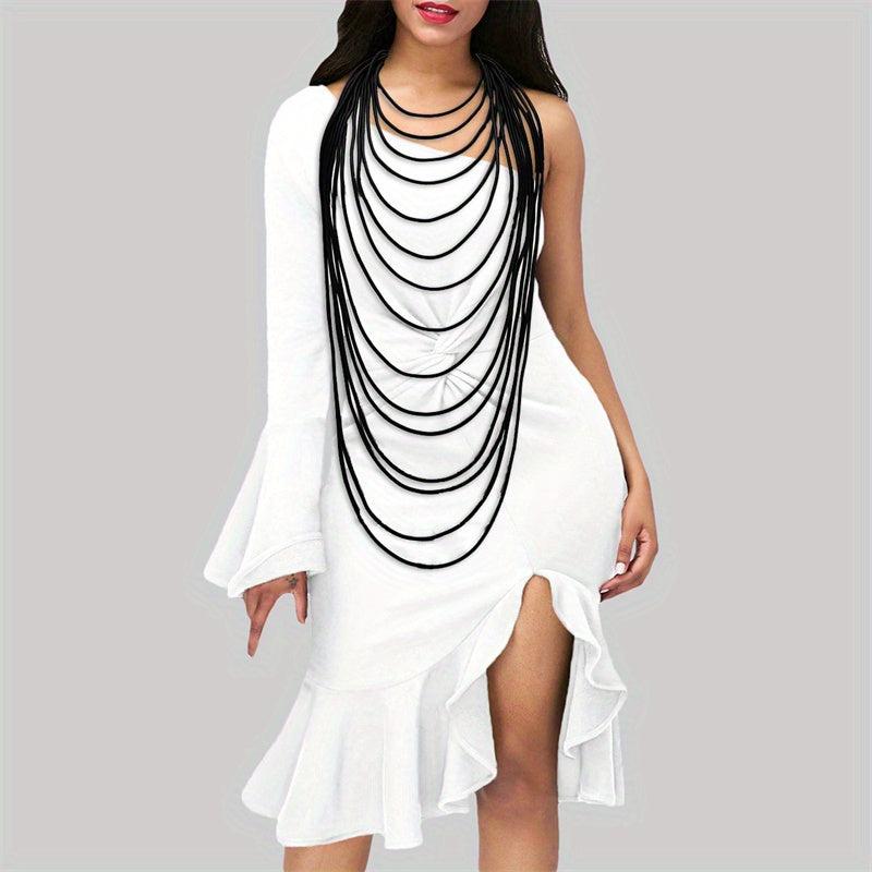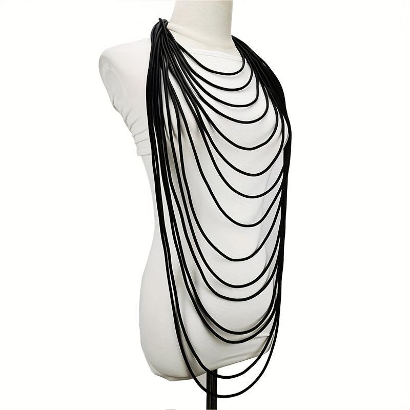 This boho gothic style long layered necklace features faux leather chain that is versatile and suitable for daily wear and party occasions. It is an all-season accessory.