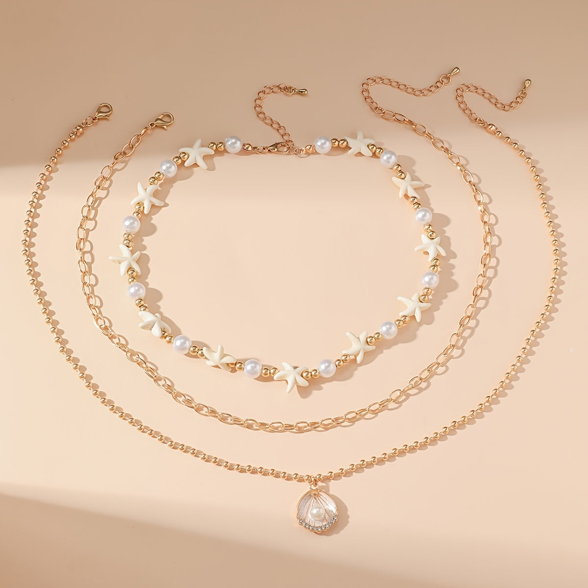 Elevate your summer look with this 3-piece bohemian necklace set featuring shell pendants. Perfect gift for friends and mothers, suitable for daily wear, parties, and Mother's Day.
