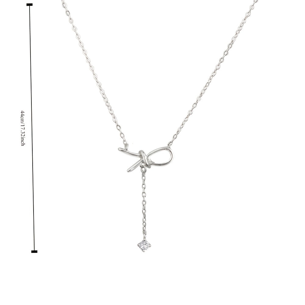 Add a touch of vintage boho charm with this 925 sterling silver necklace featuring synthetic zirconia embellishments. Perfect for daily wear or as a gift for any occasion, this light knot tassel clavicle chain is ideal for all seasons.