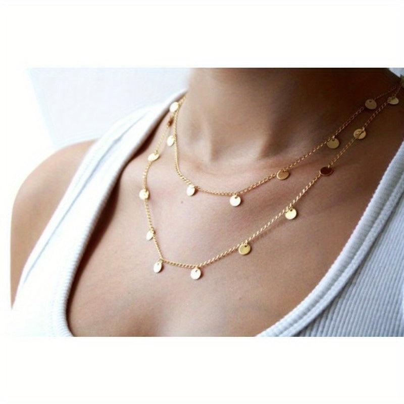 Make a statement with this boho-style long pendant necklace featuring sequins in a vintage golden tone. The perfect accessory to enhance your personality and elevate your look.